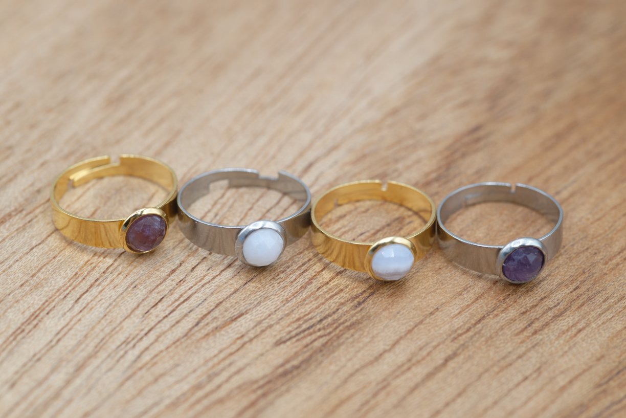 Acier inoxydable, pierres naturelles, bague réglable