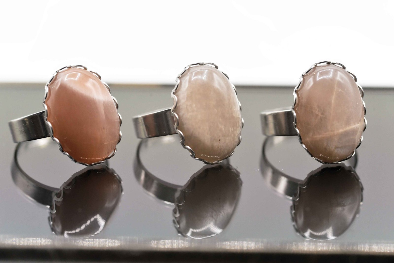 Acier inoxydable, bague réglable, pierre 18x13mm