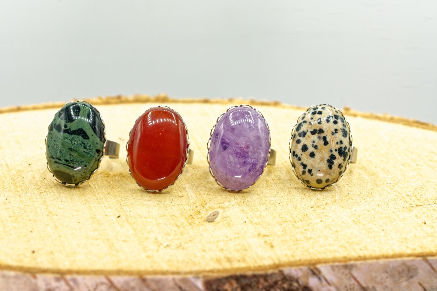 | choix pierre | cornaline, jade lavande, jaspe dalmatien, jaspe kambaba |