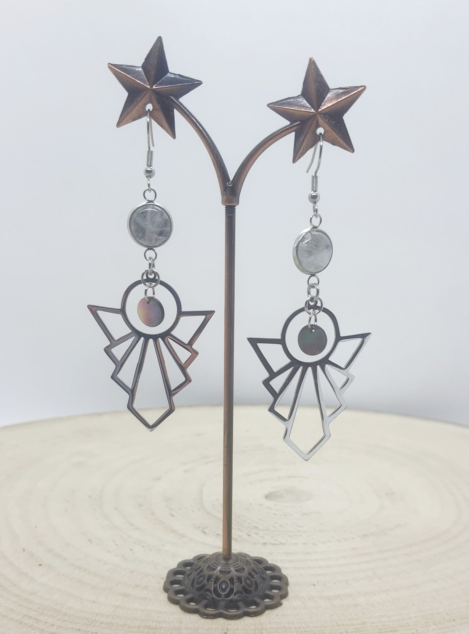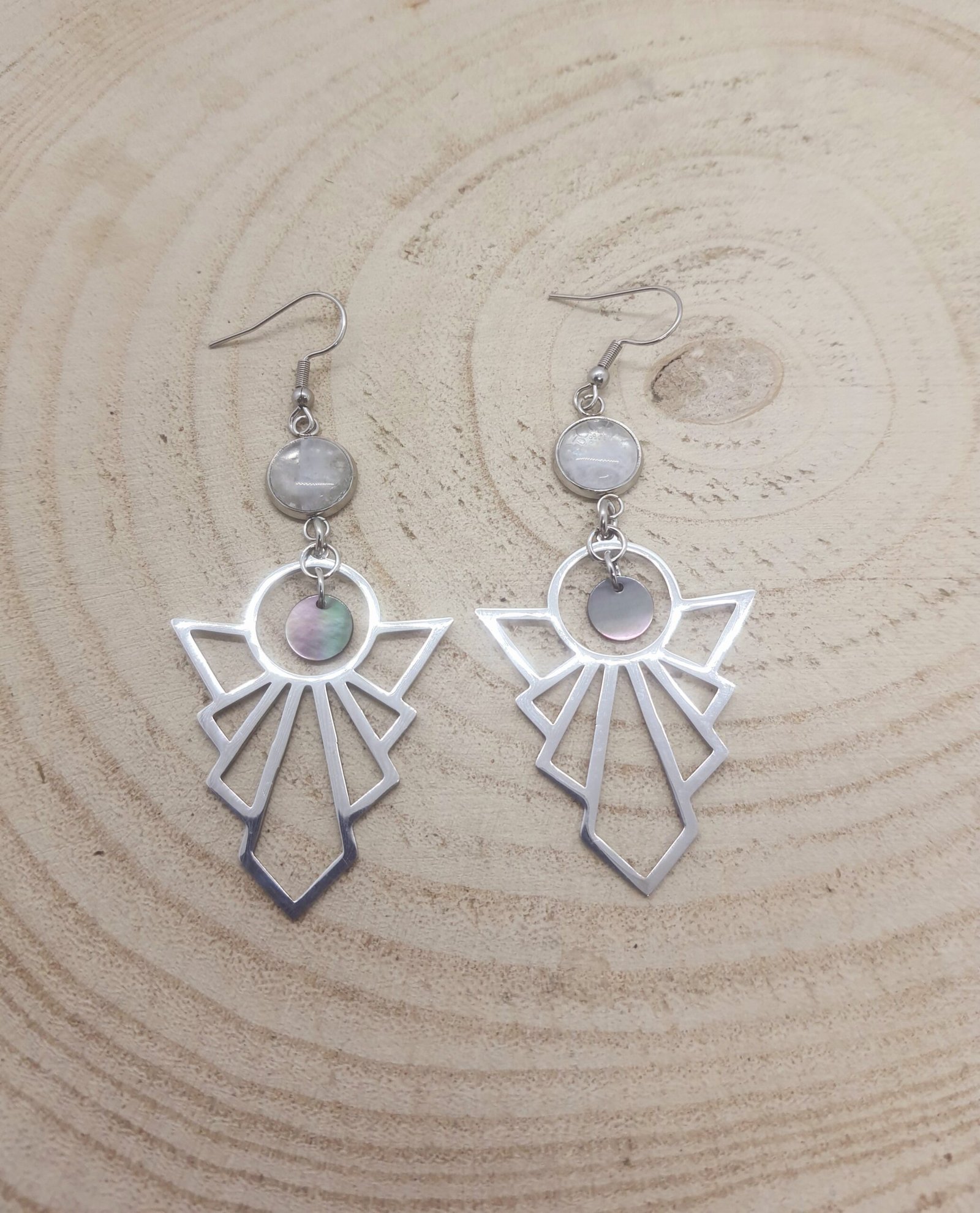Boucles d’oreilles anges cristal de roche et nacre