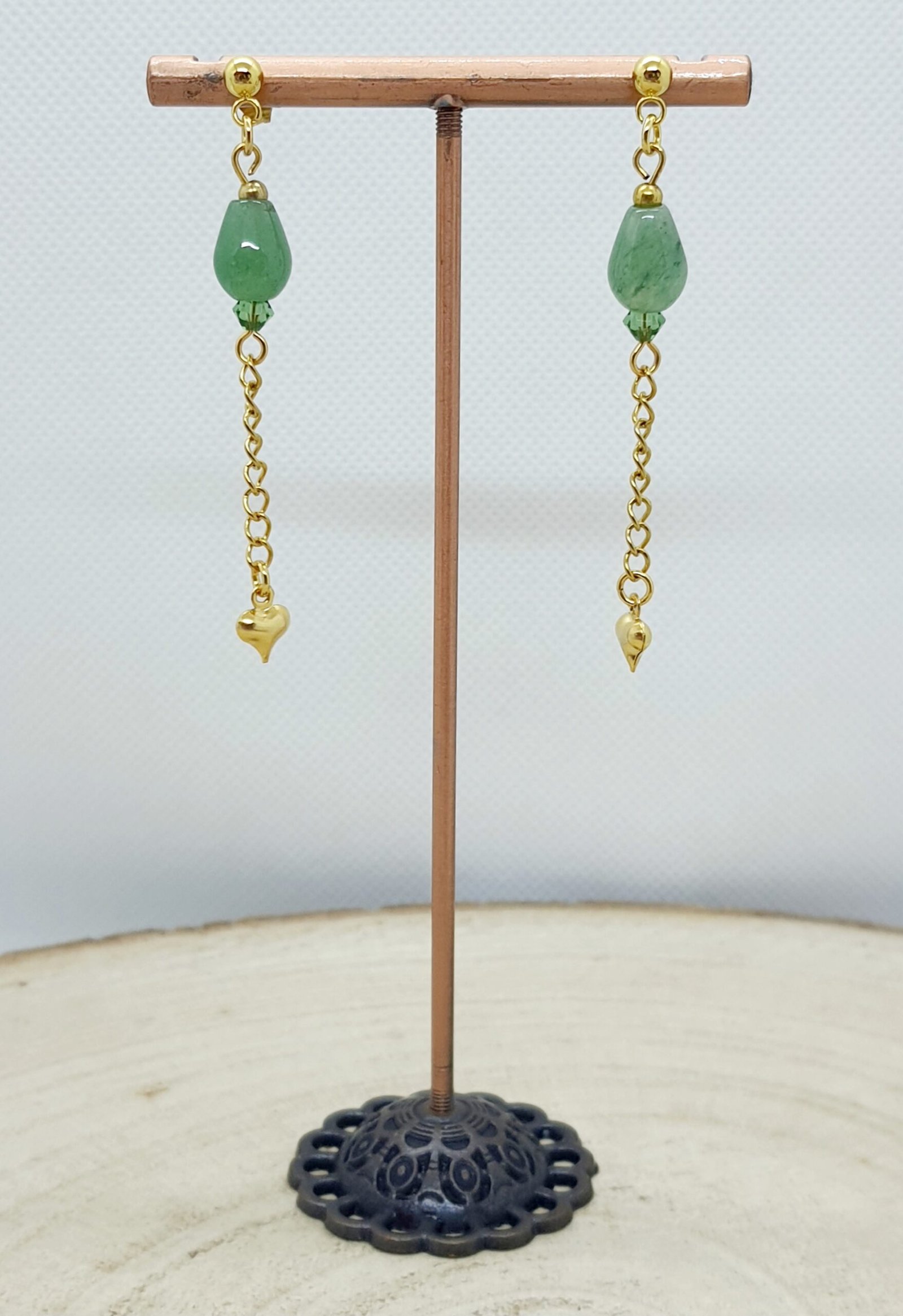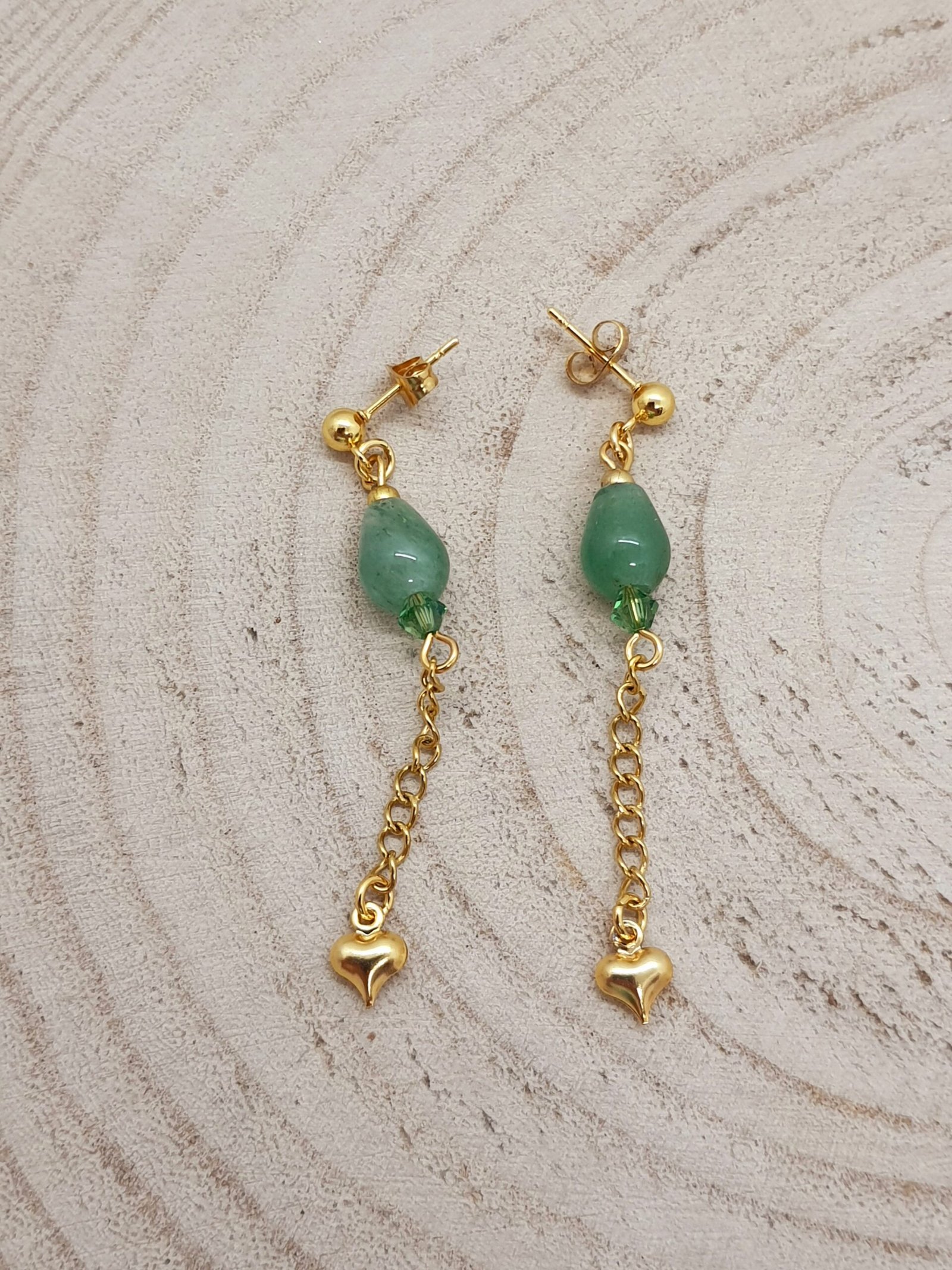 Boucles d’oreilles aventurine verte coeurs