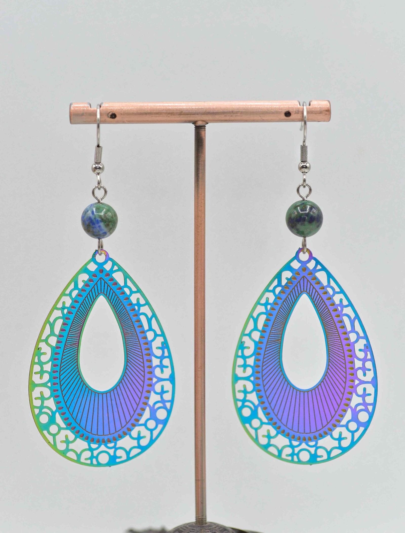 Acier inoxydable, pierres 8mm, longueur hors clou 6.3cm