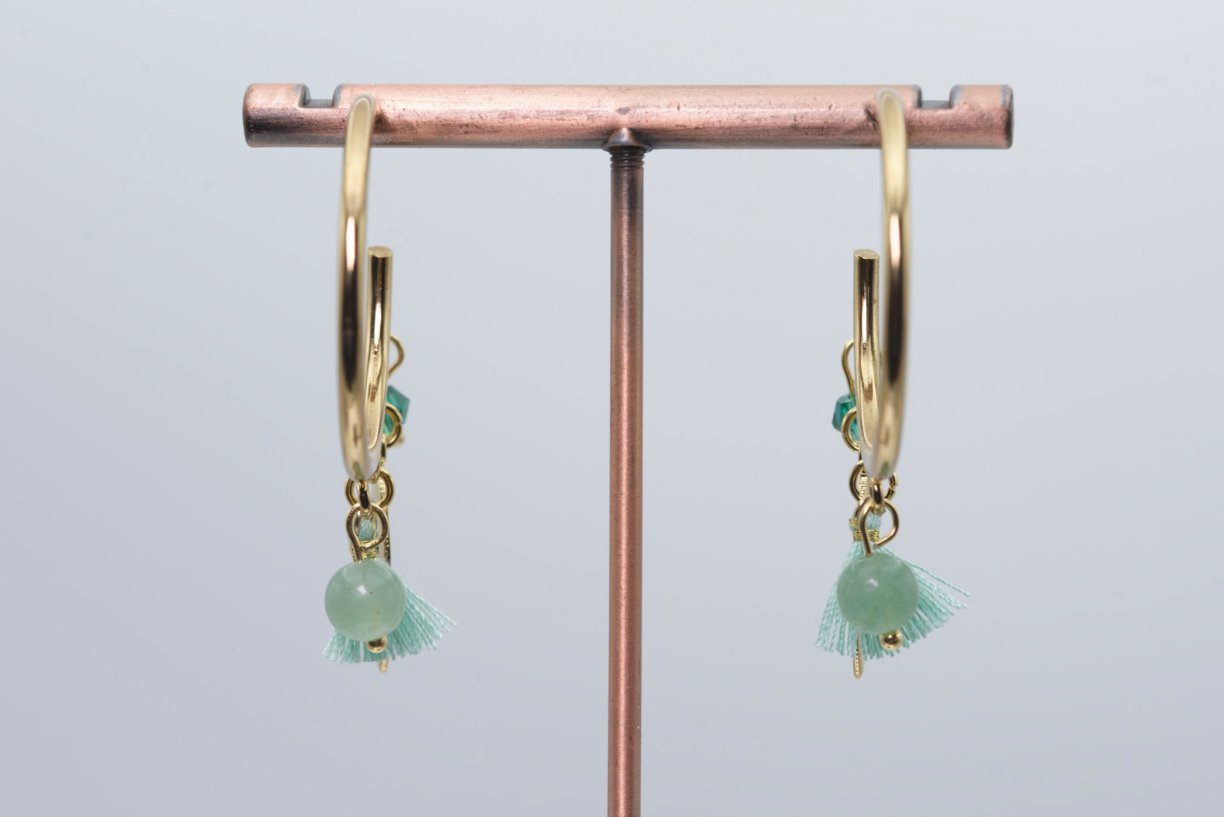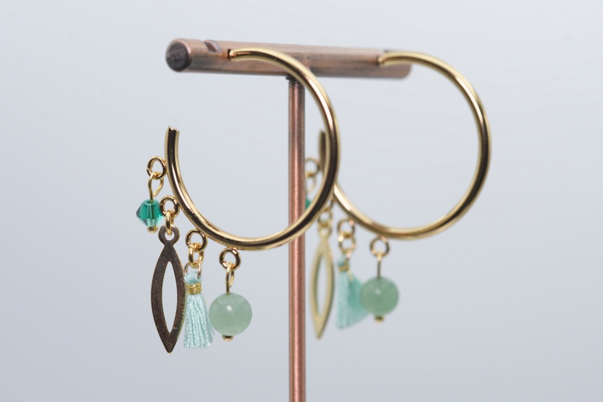 Acier inoxydable, pierre 6mm, verre de bohème 4mm, diamètre boucle 3cm