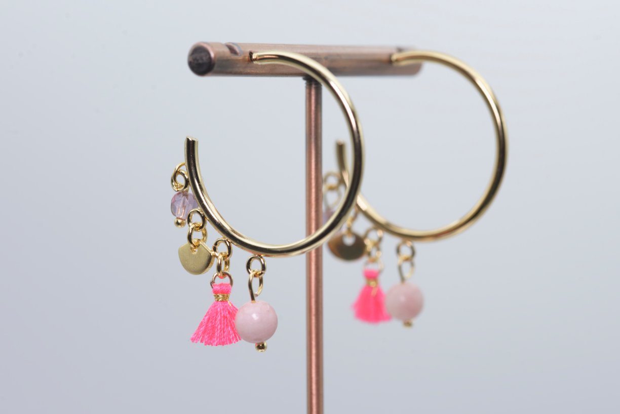 Boucles d’oreilles bohème Opale rose des Andes