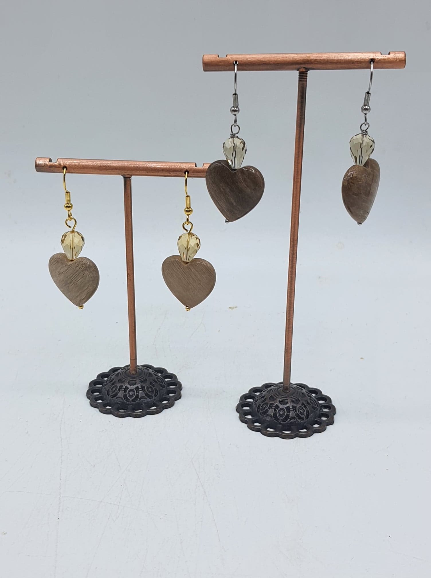 Acier inoxydable, cristal et bois fossilisé 3.5cm hors clou