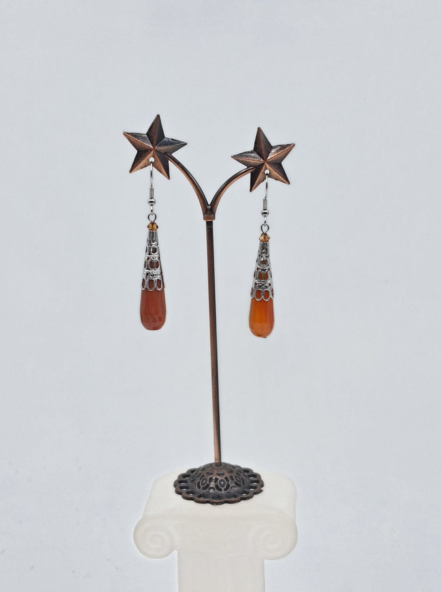 Acier inoxydable, cristal de swarovski, cornaline pierre 3cm, longueur hors clou 3.5cm,