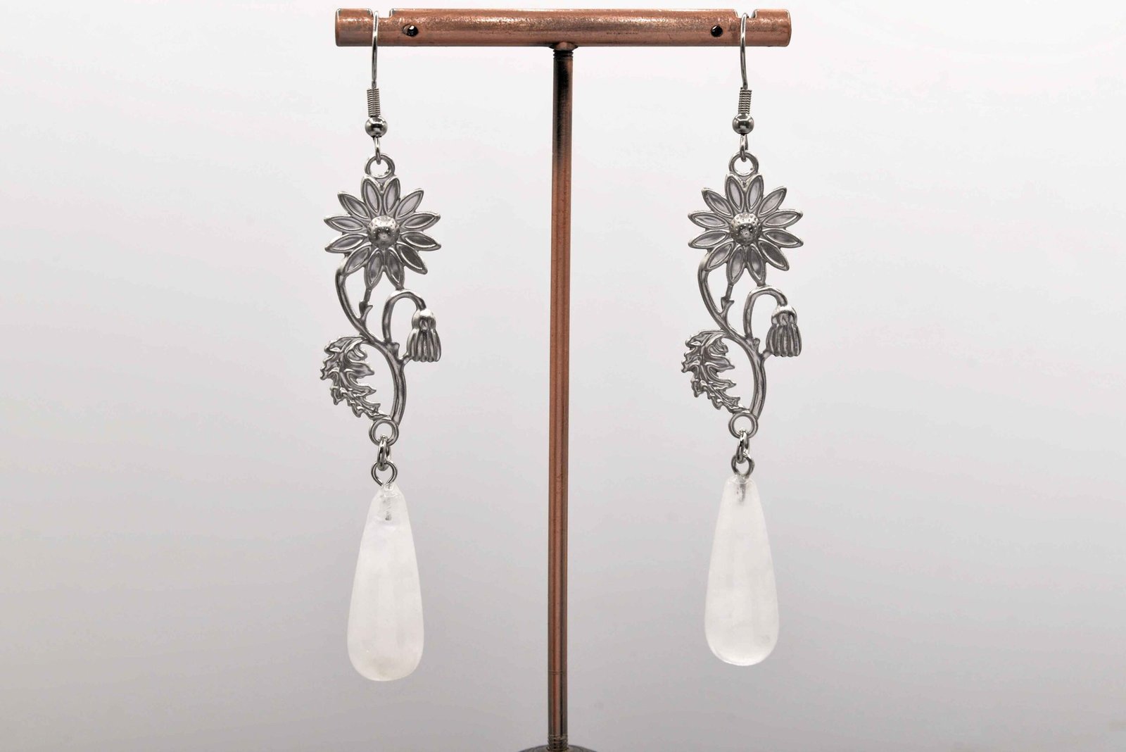 Acier inoxydable, longueur 6.7cm hors clou, pierre 2.7cm