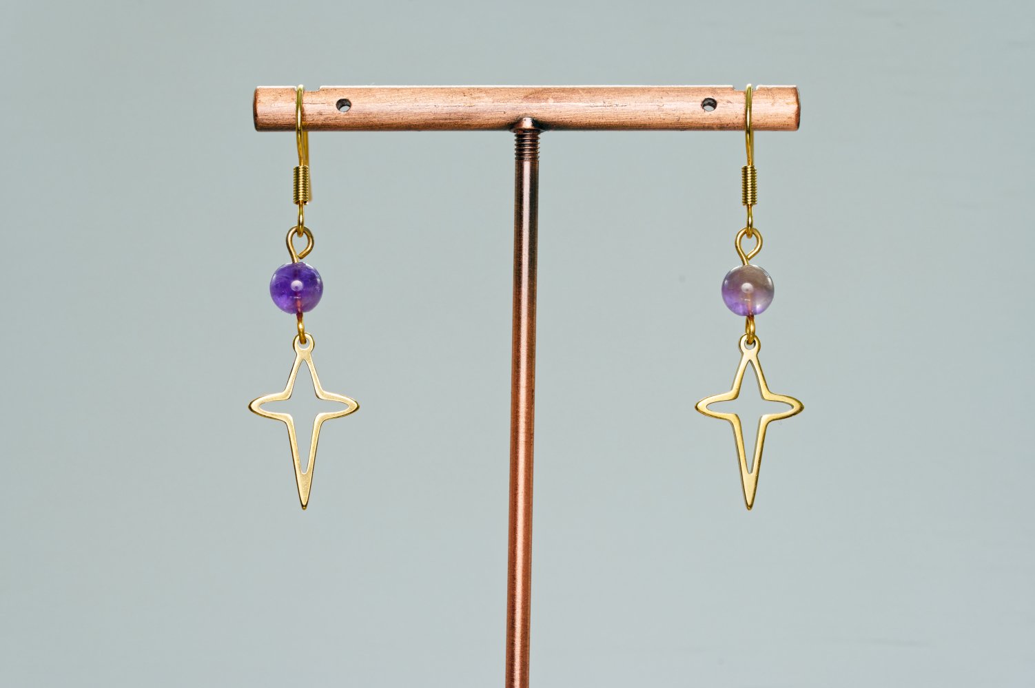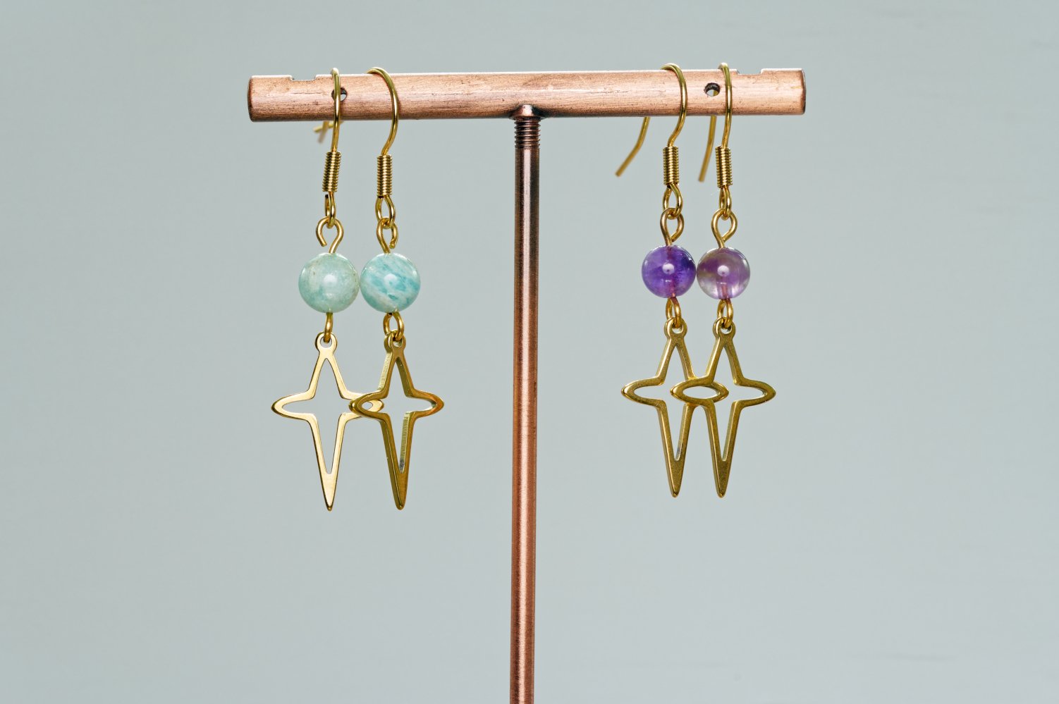 Boucles d’oreilles étoiles amazonite améthyste