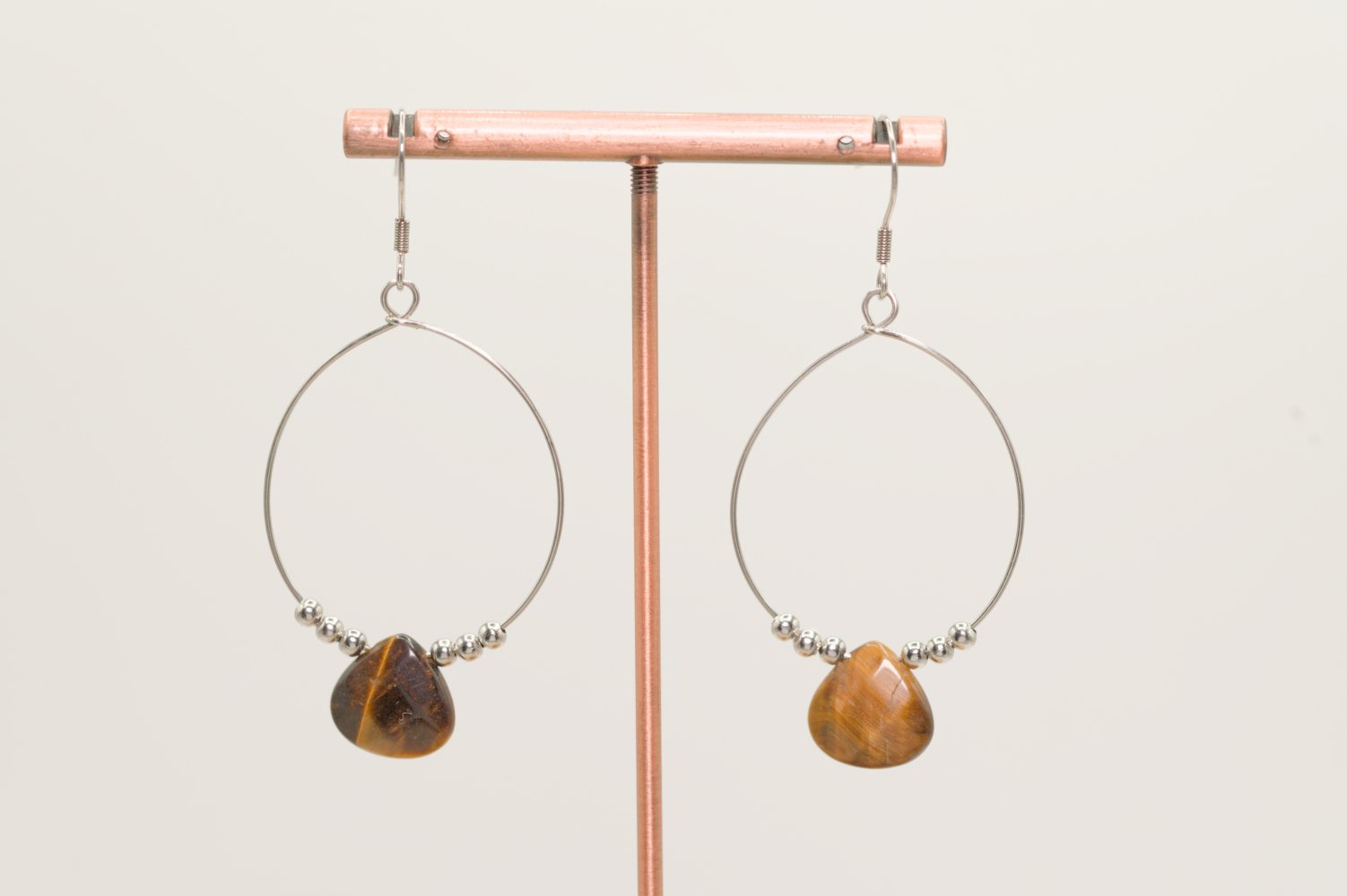 Boucles d’oreilles gouttes Oeil de tigre argentées