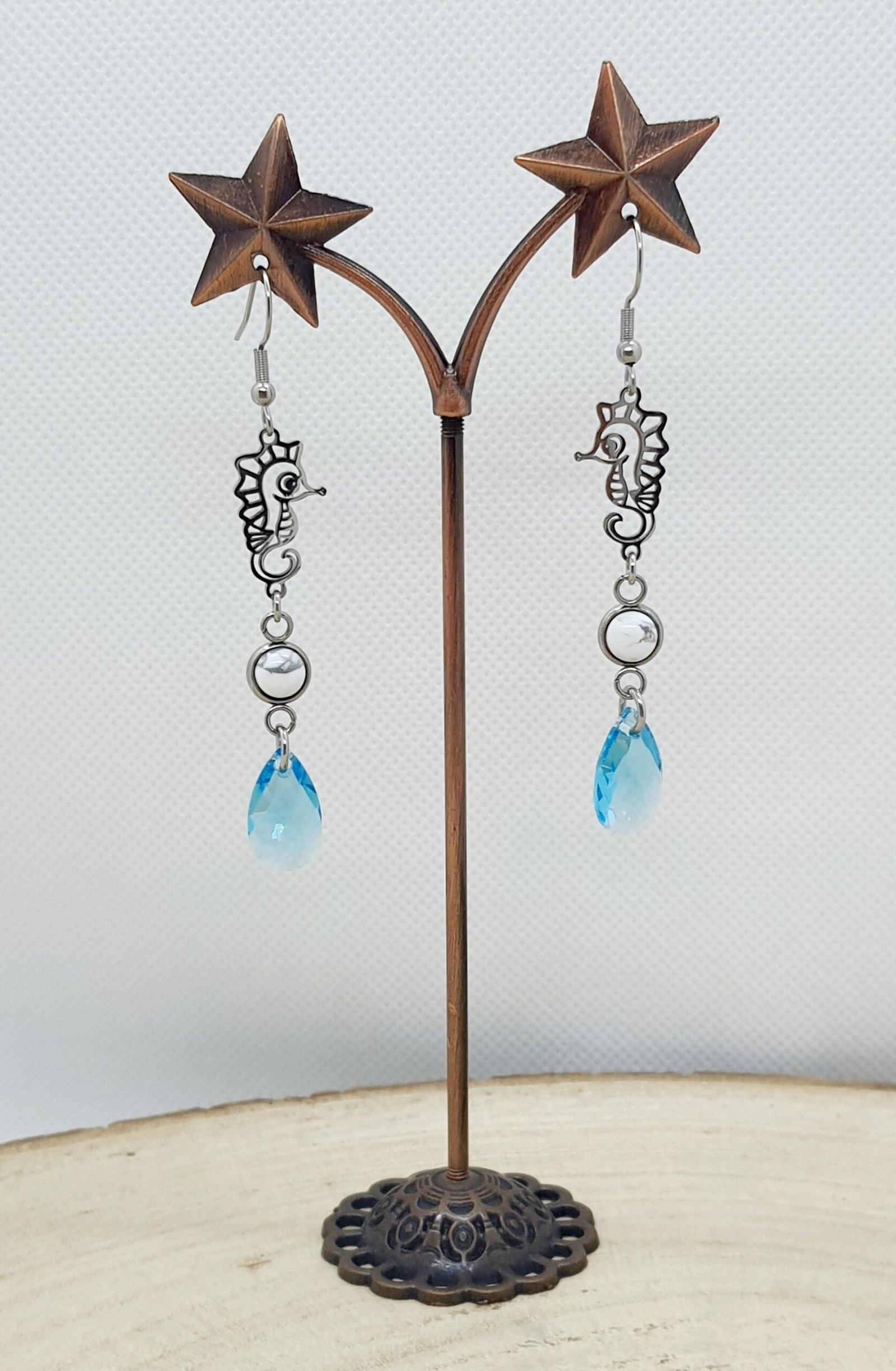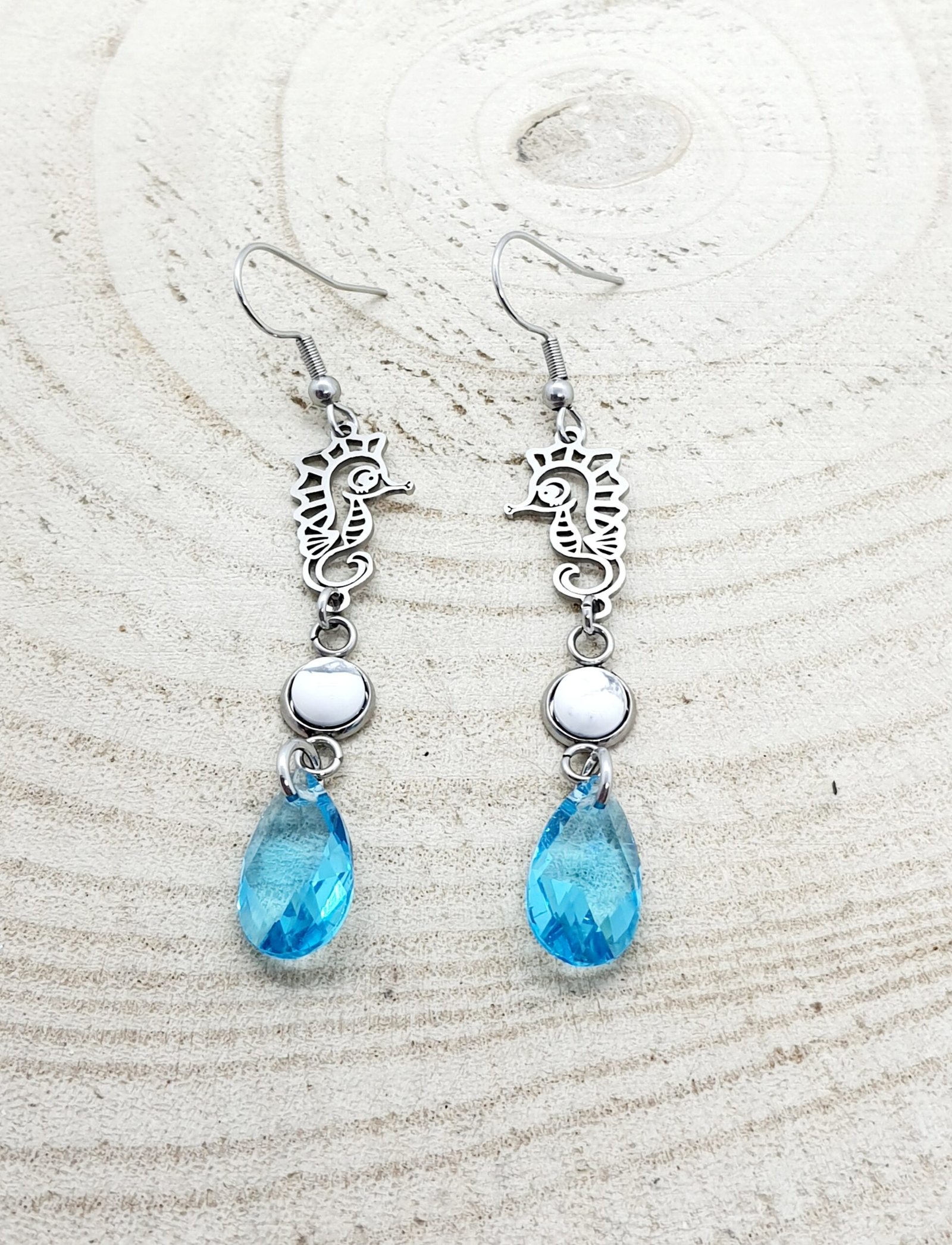 Boucles d’oreilles howlite hippocampe