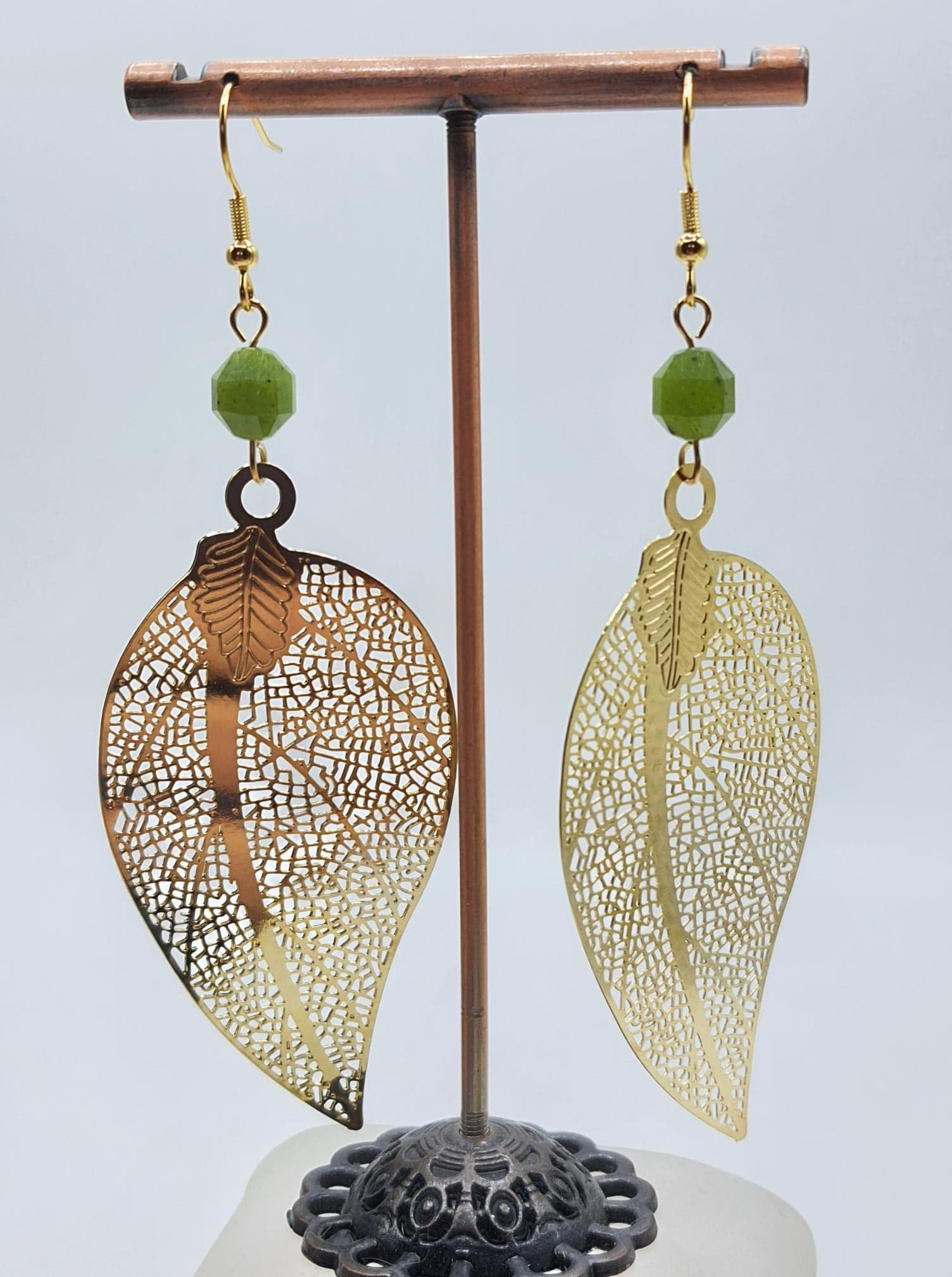 Clous acier inoxydable, feuilles en laiton, longueur hors clou 8cm taille pierre 8mm