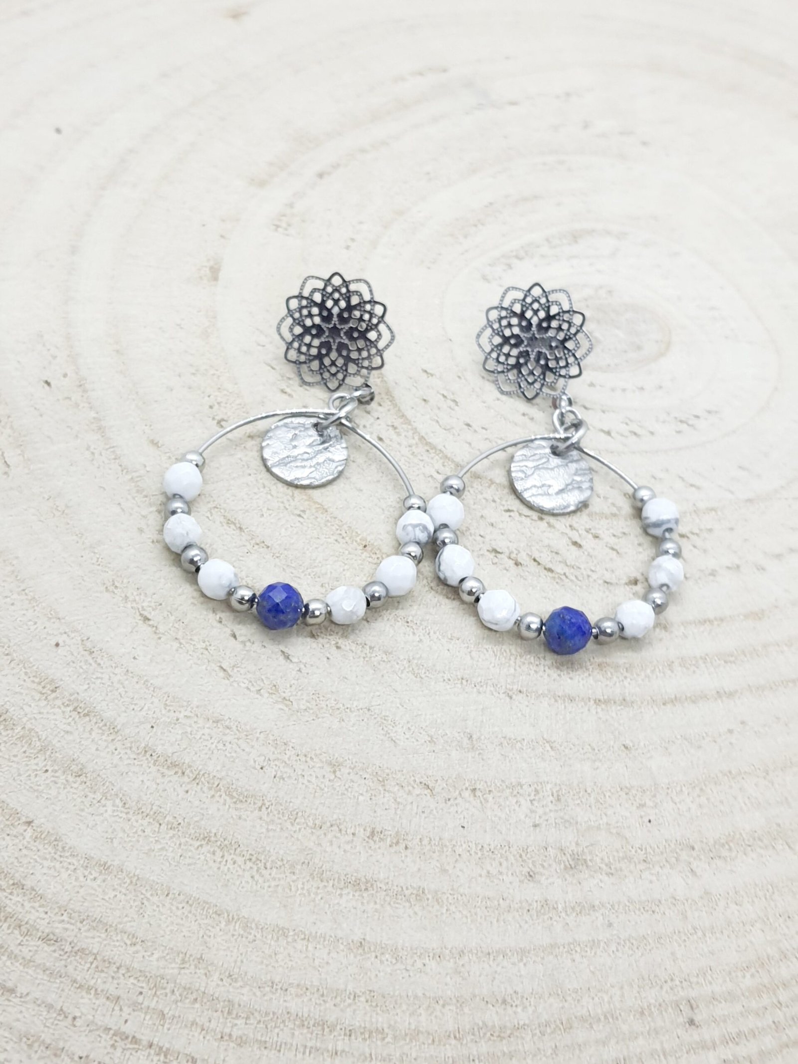 Boucles d’oreilles lapis lazuli – howlite mandala