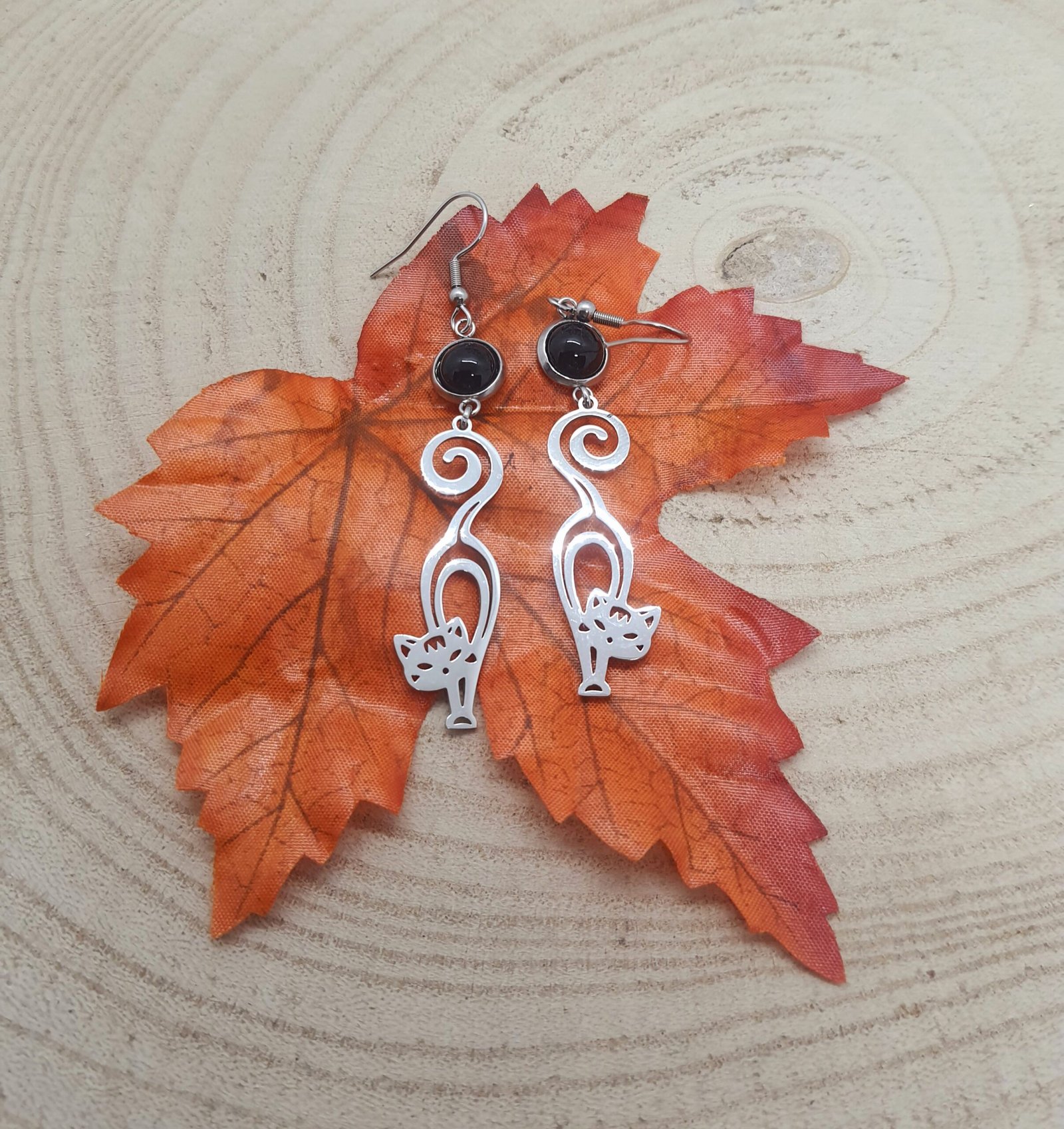 Boucles d’oreilles obsidienne chats