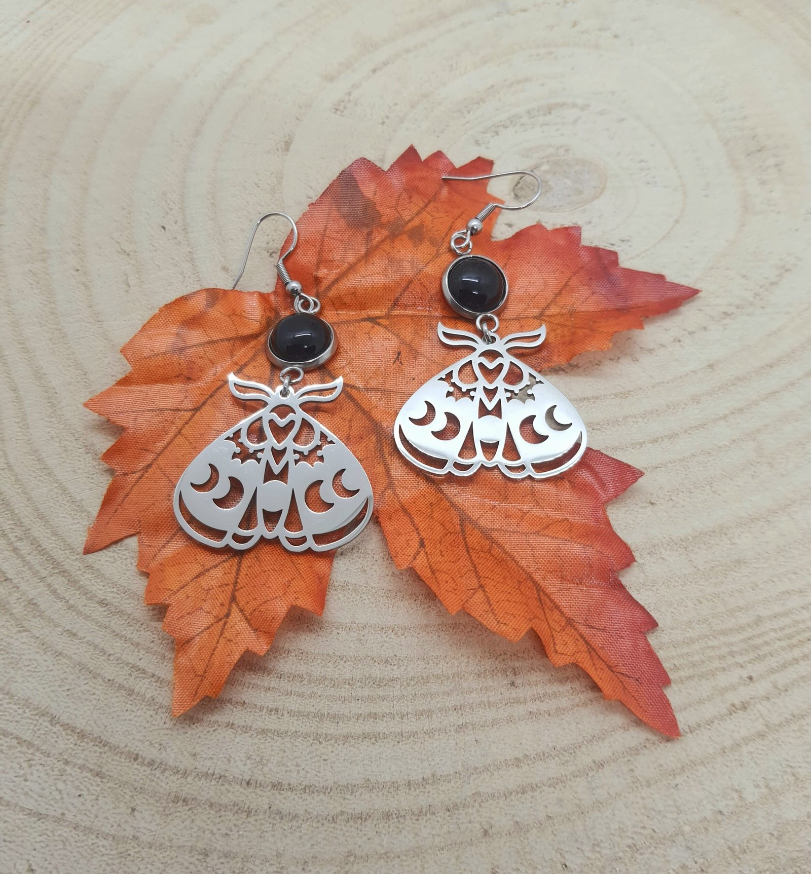 boucles d’oreilles obsidienne papillons