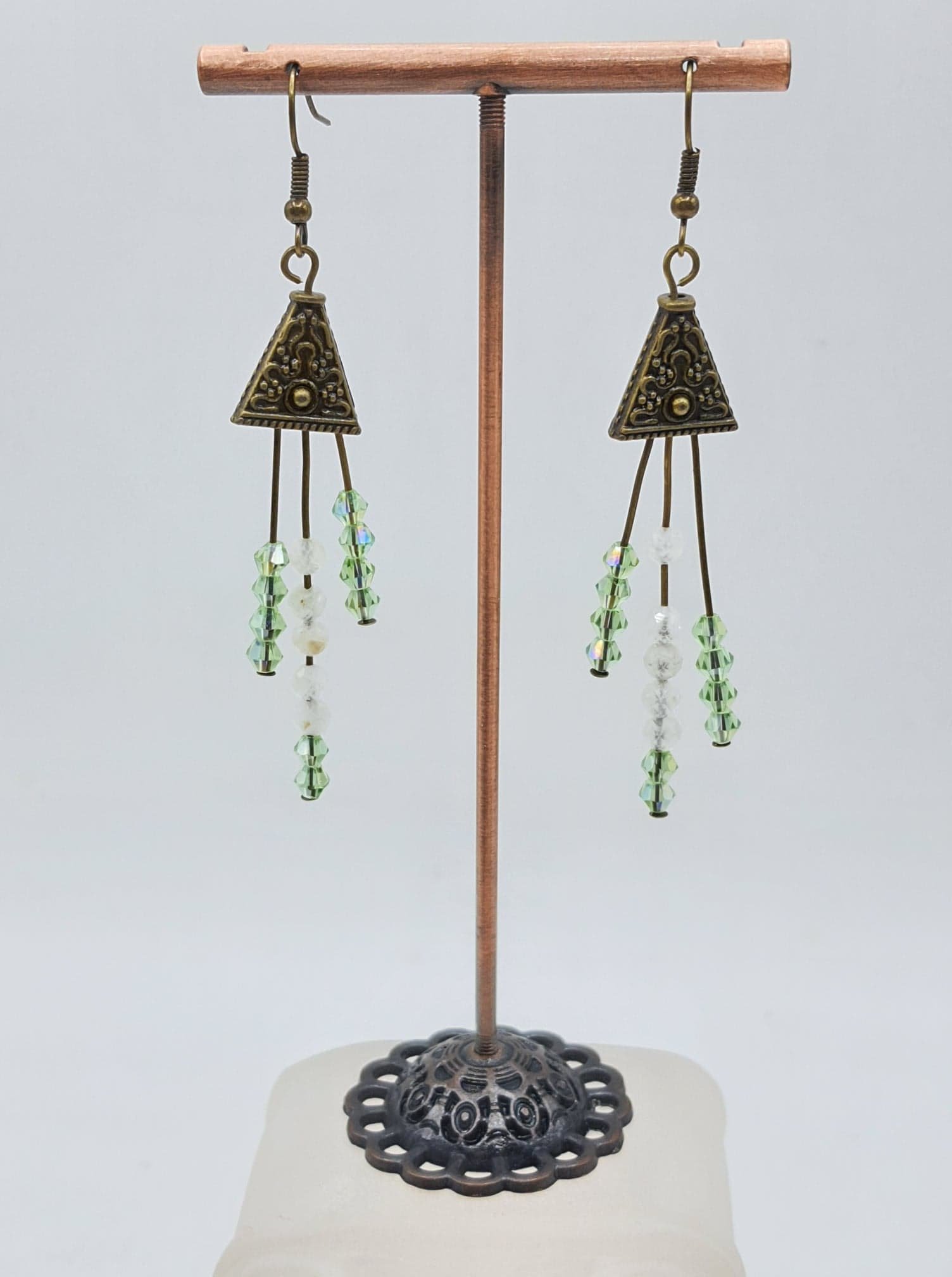 Laiton, verre, péristérite 4mm, longueur hors clou 5.8cm