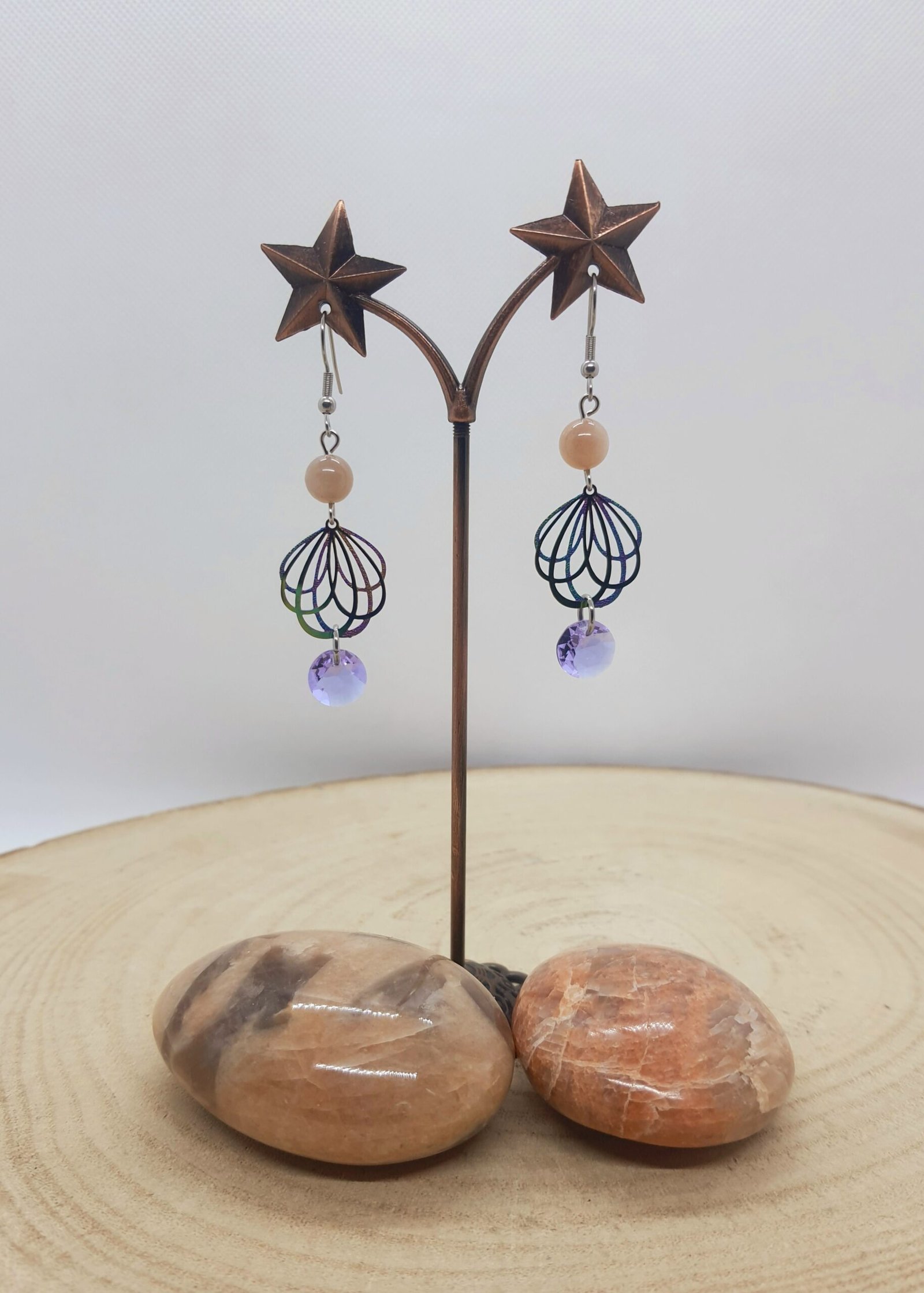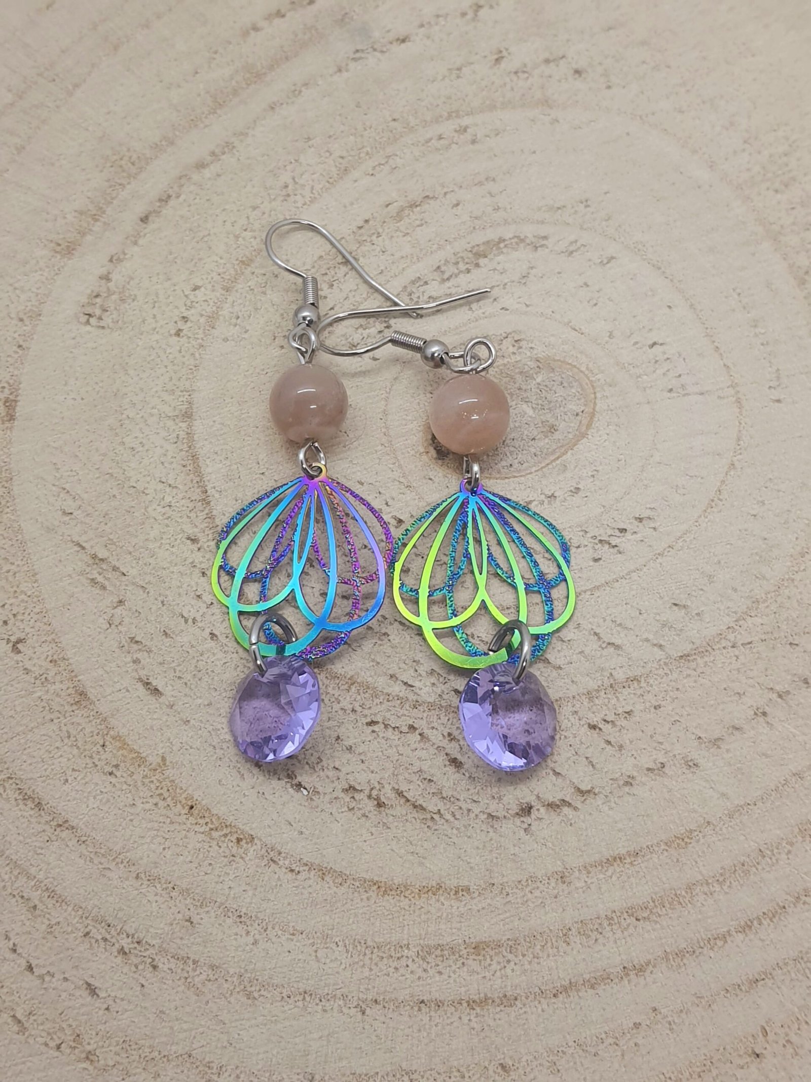 Boucles d’oreilles pierre de lune ailes de fées