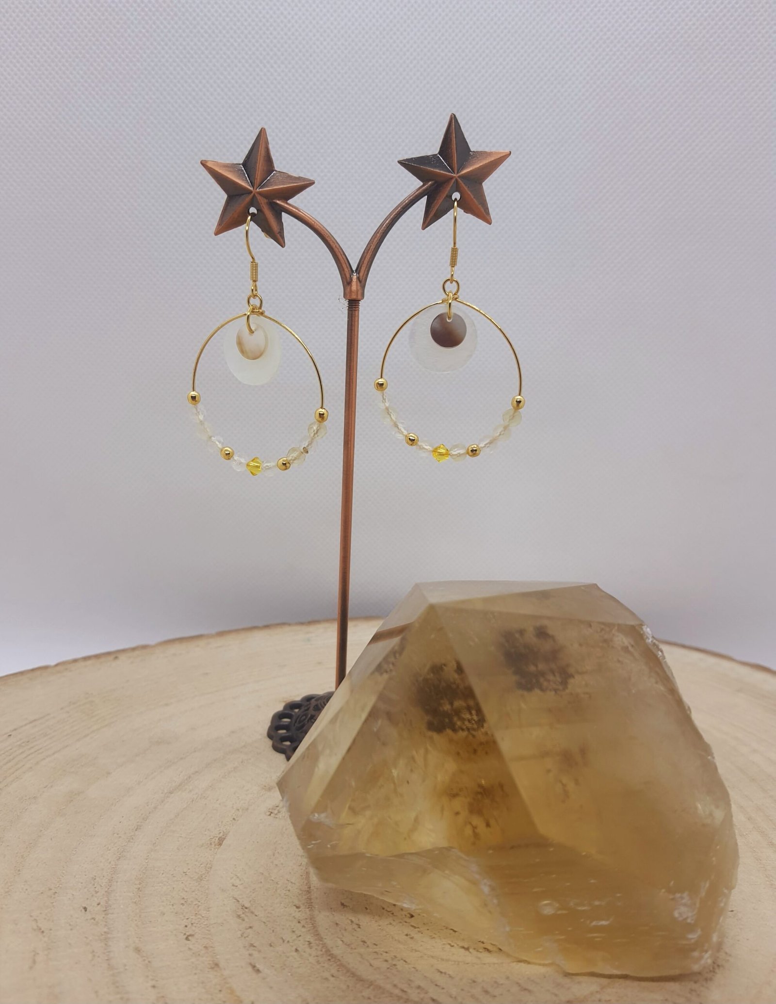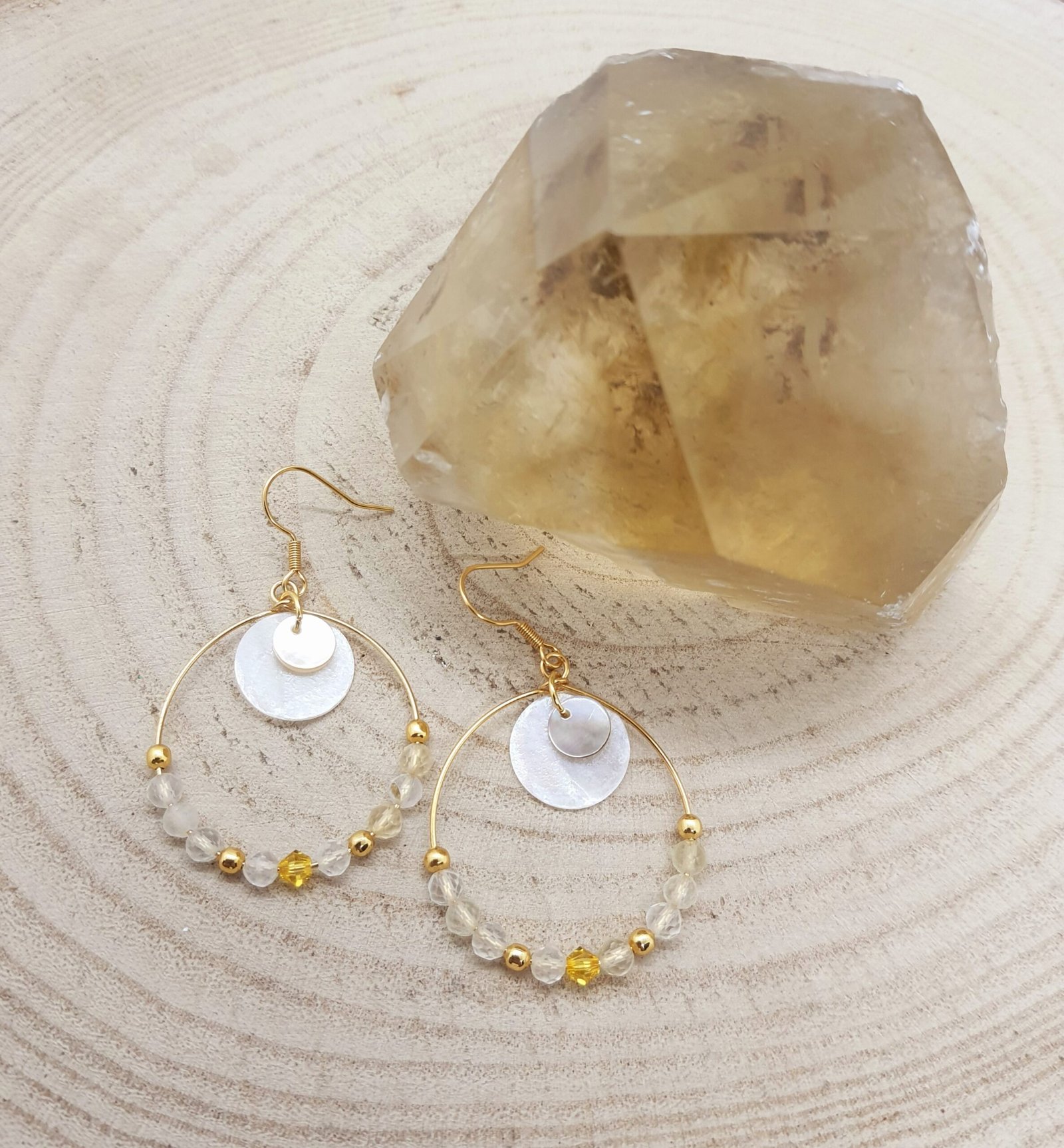 Boucles d’oreilles quartz rutile et nacre