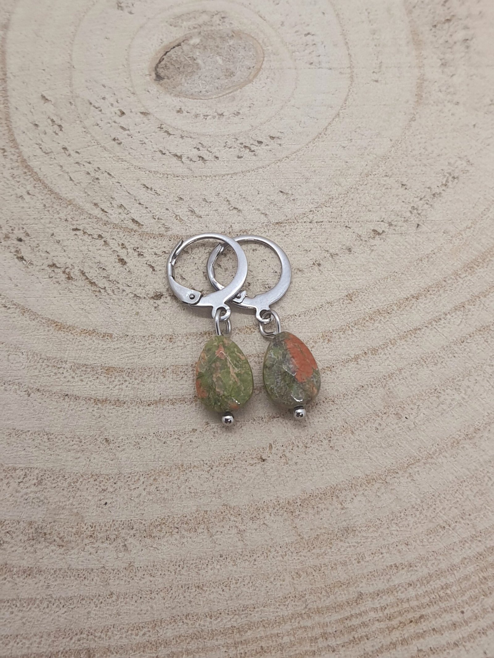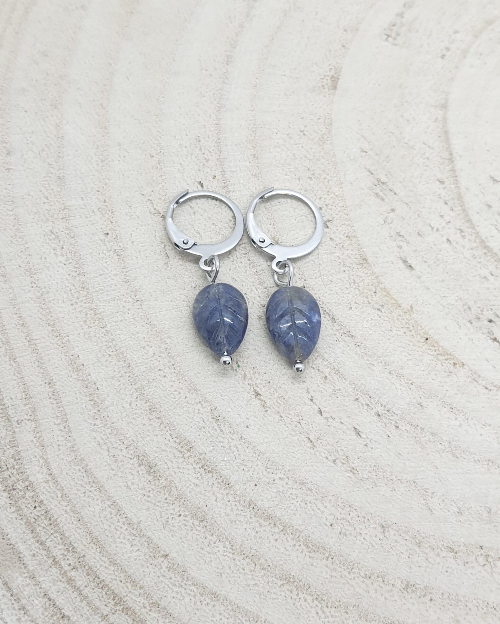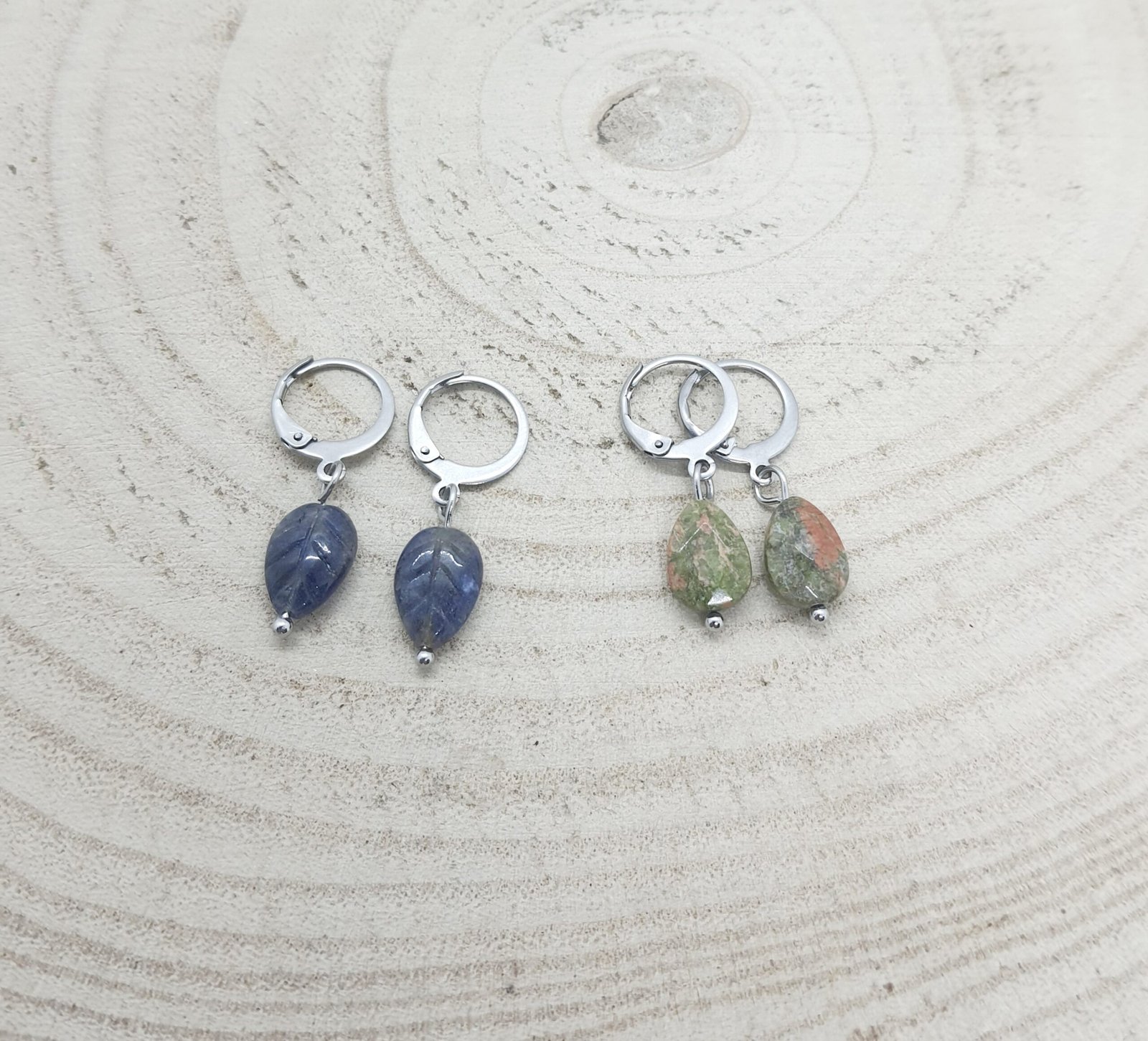 Boucles d’oreilles sodalite ou jaspe unakite feuilles
