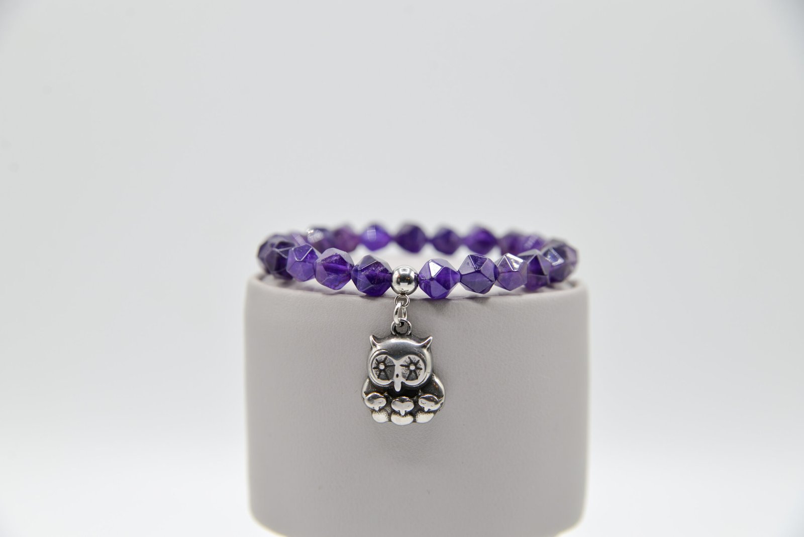 Bracelet en améthyste, polygones diamètre au choix, breloque au choix