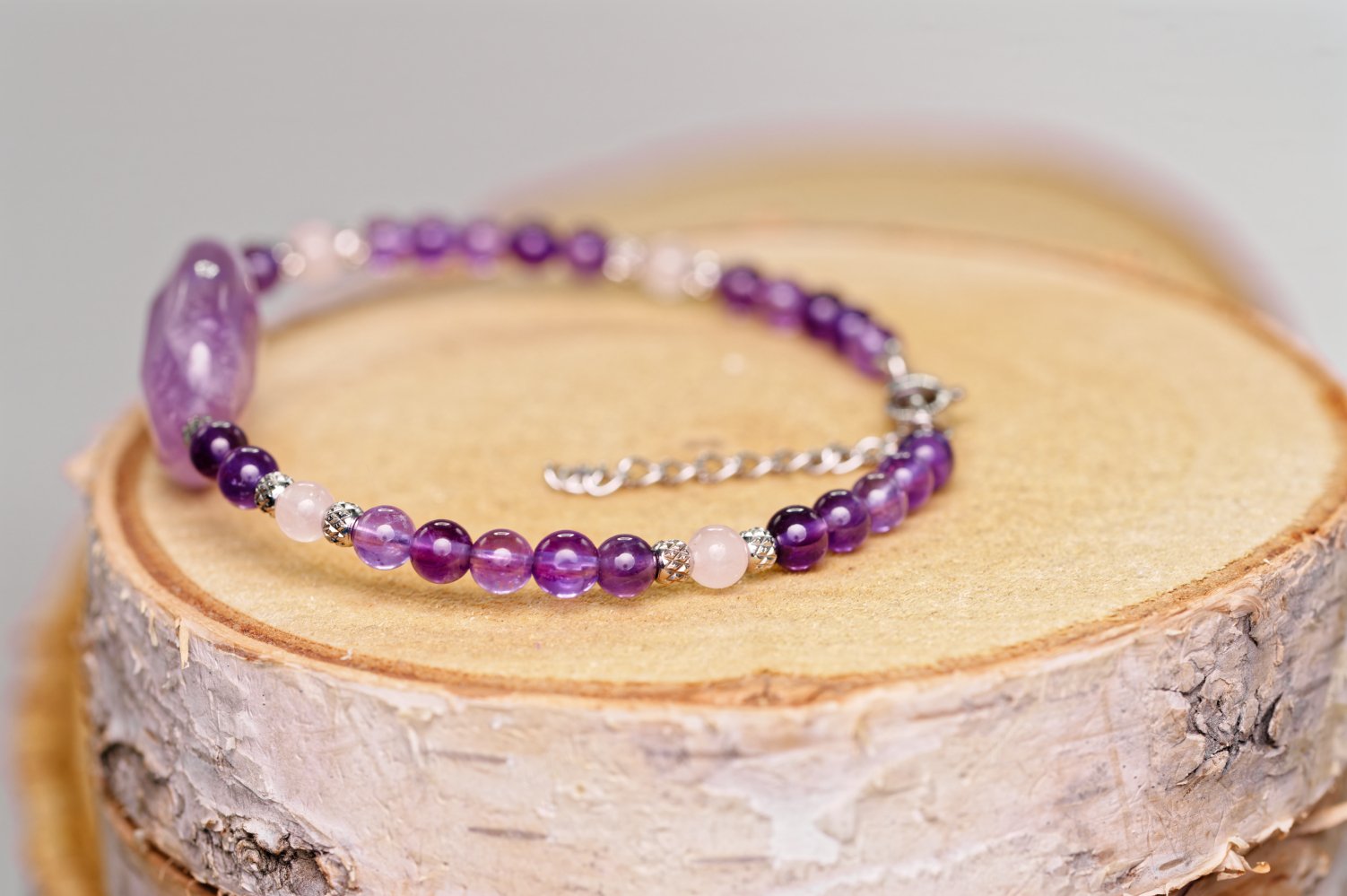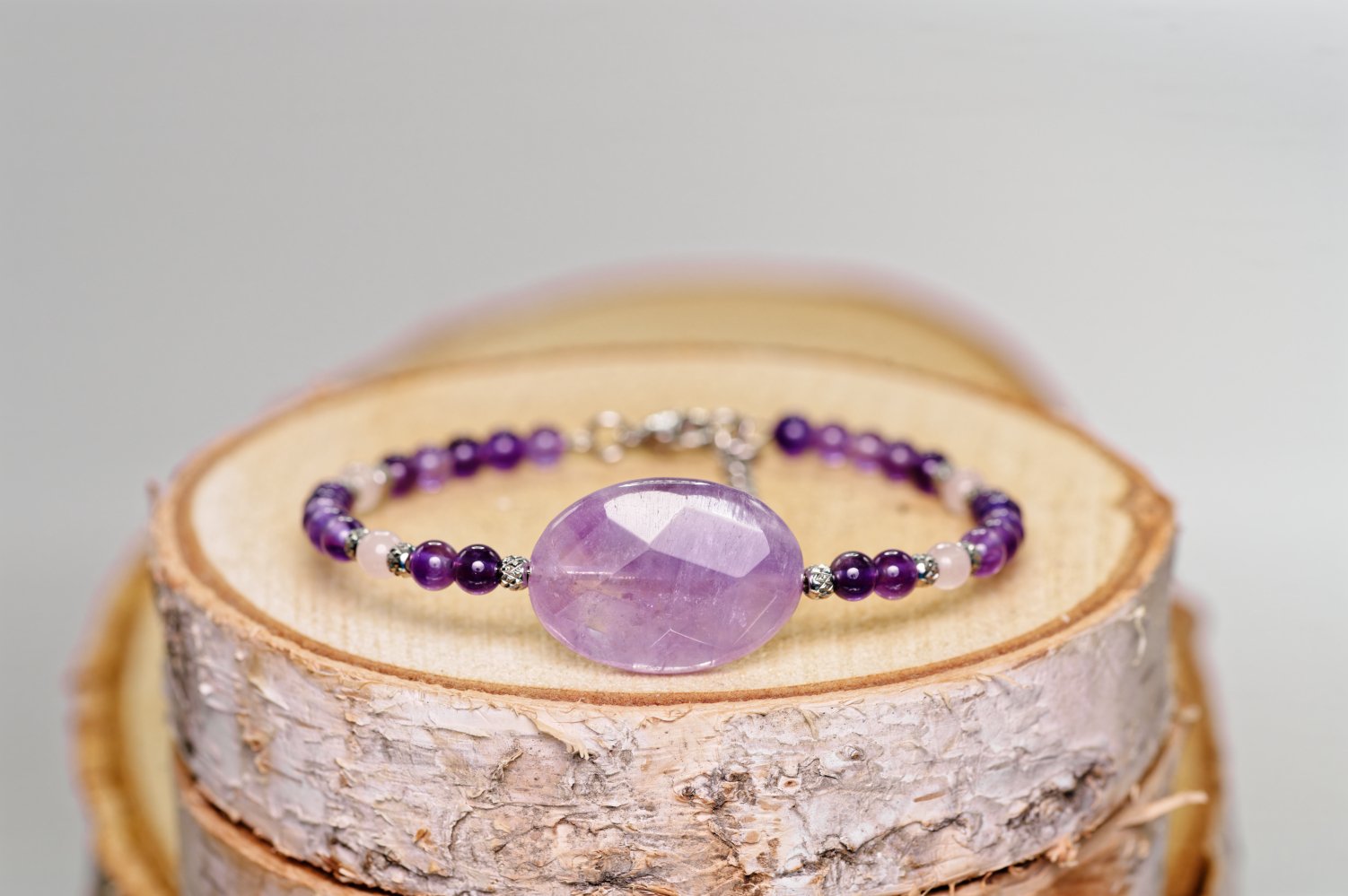 Bracelet améthyste et quartz rose
