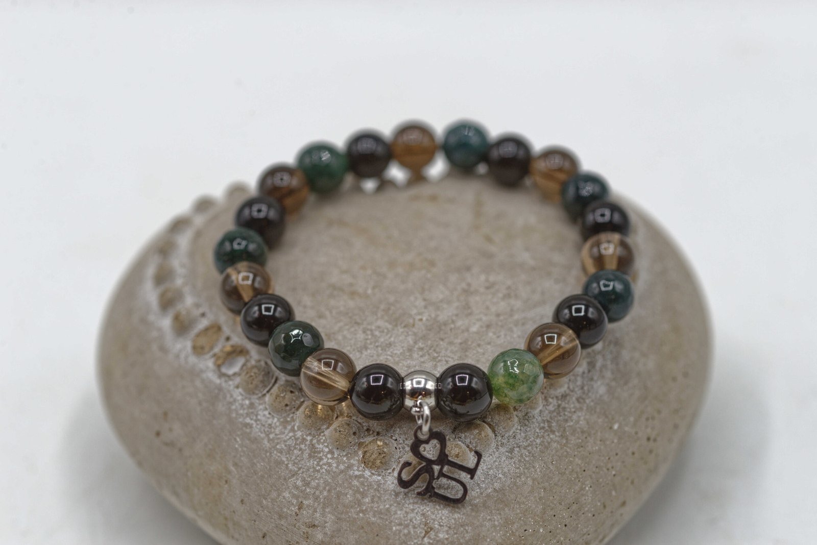 Pierres : Onyx, Agate mousse, Quartz fumé