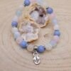Les pierres: pierre de lune blanche adulaire, angélite, aigue-marine, quartz rose