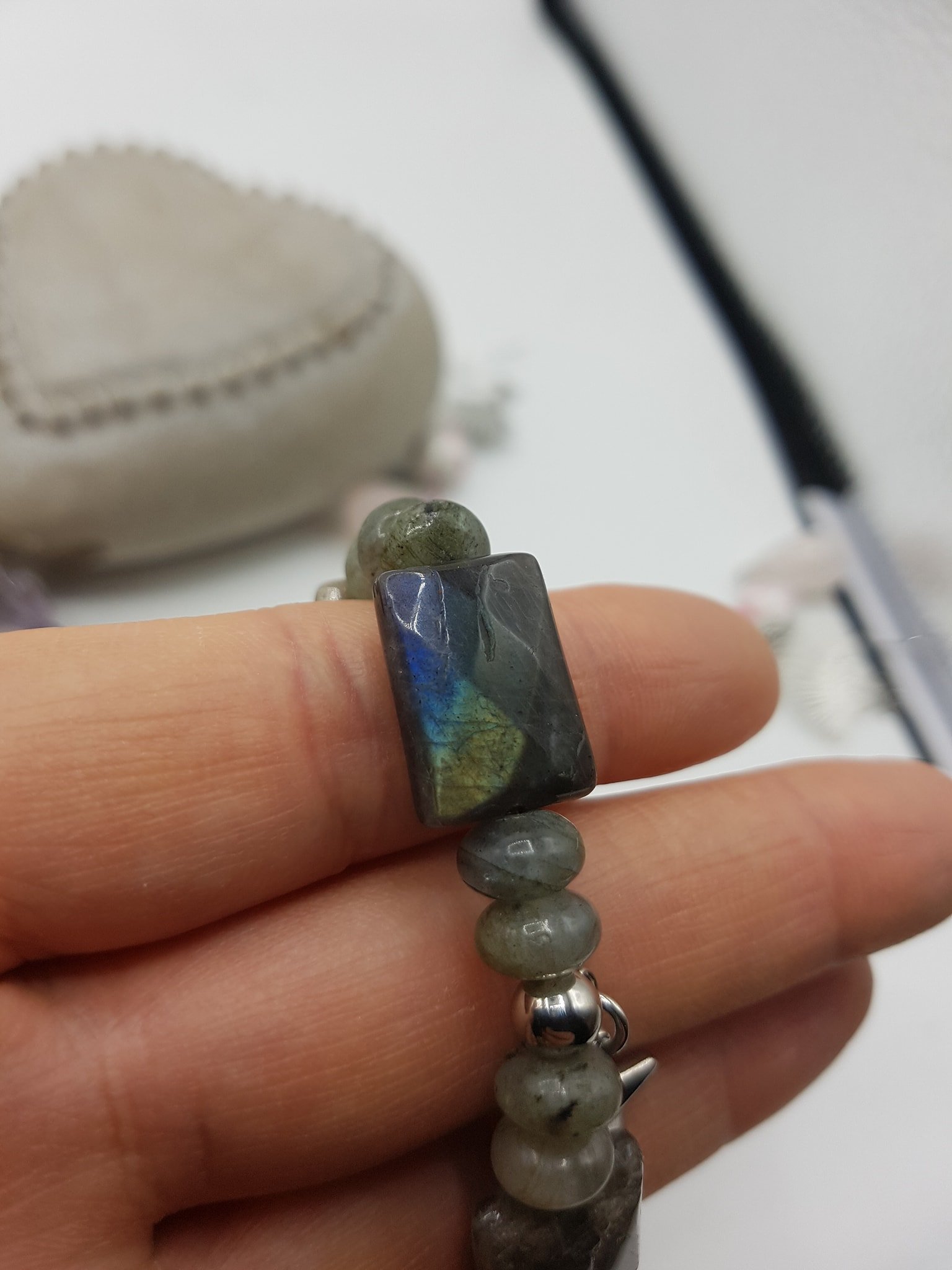 bracelet en labradorite et acier inoxydable