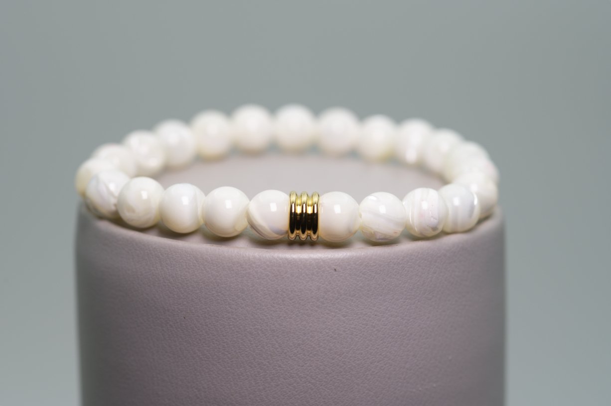 Bracelet en Nacre, pierres 6mm, acier inoxydable