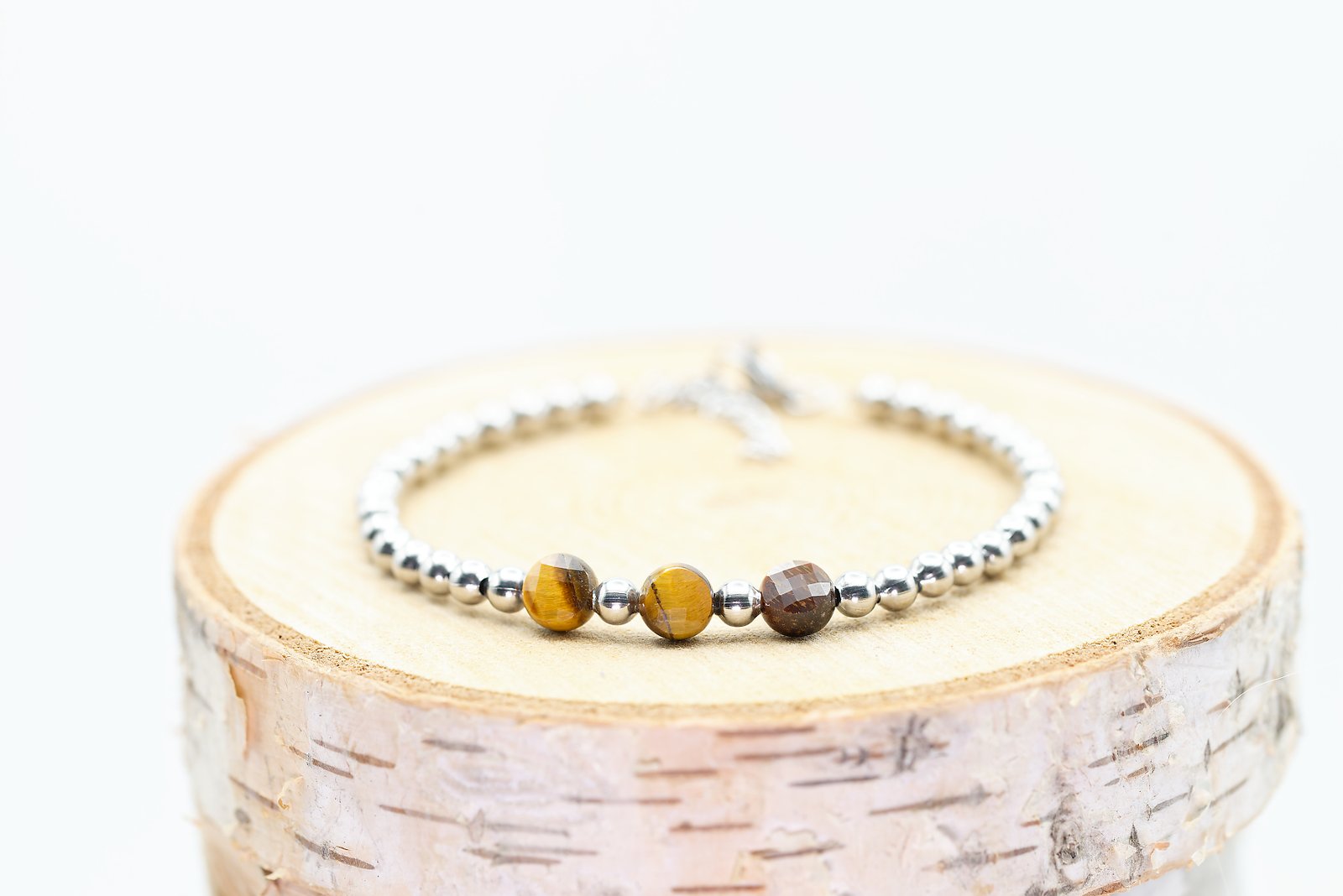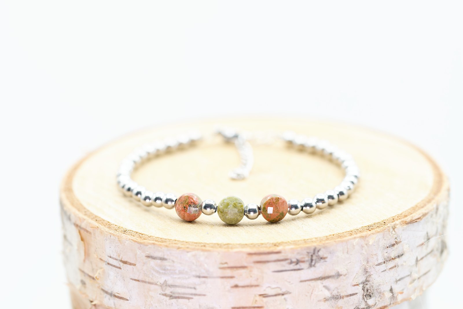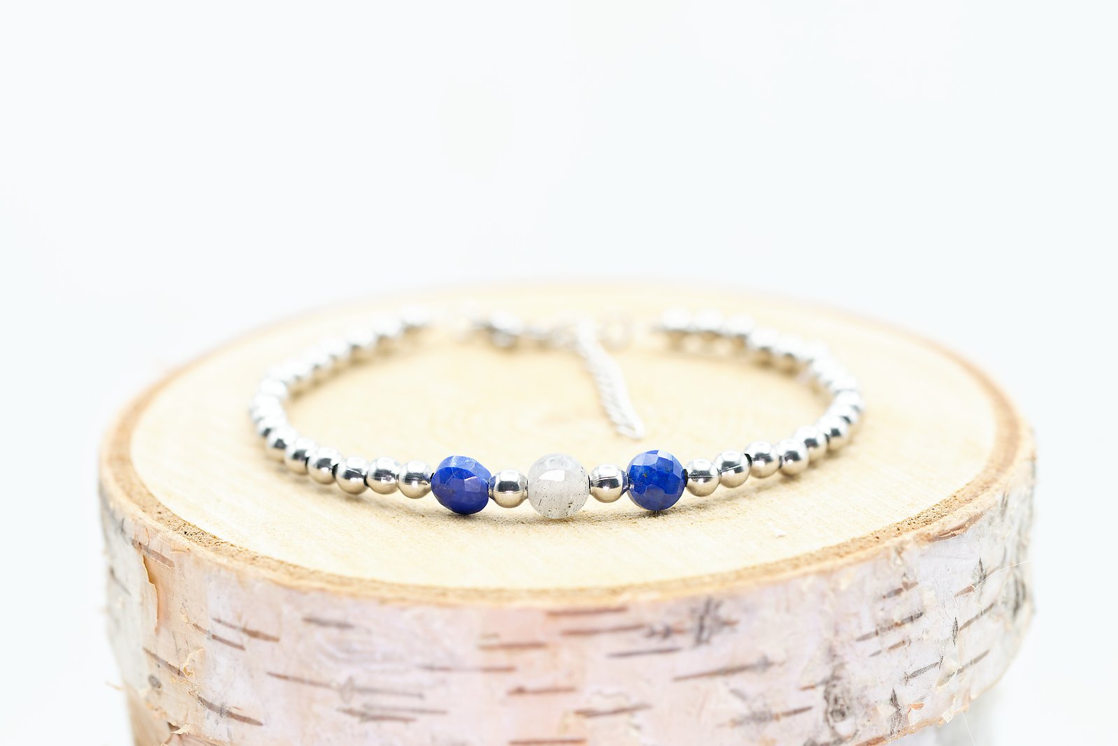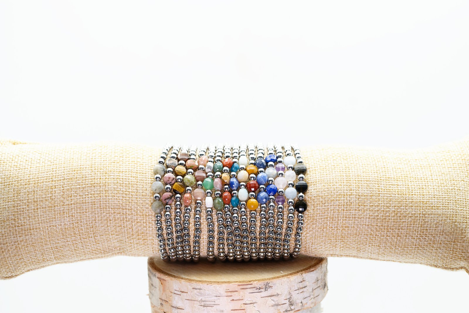 Acier inoxydable, pierres naturelles, diamètre pierres 4 ou 6mm, réglable par chaine 4cm
