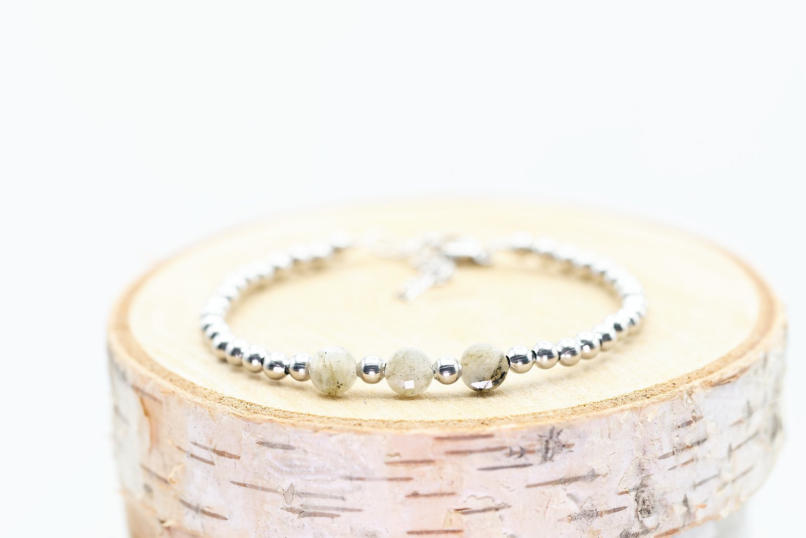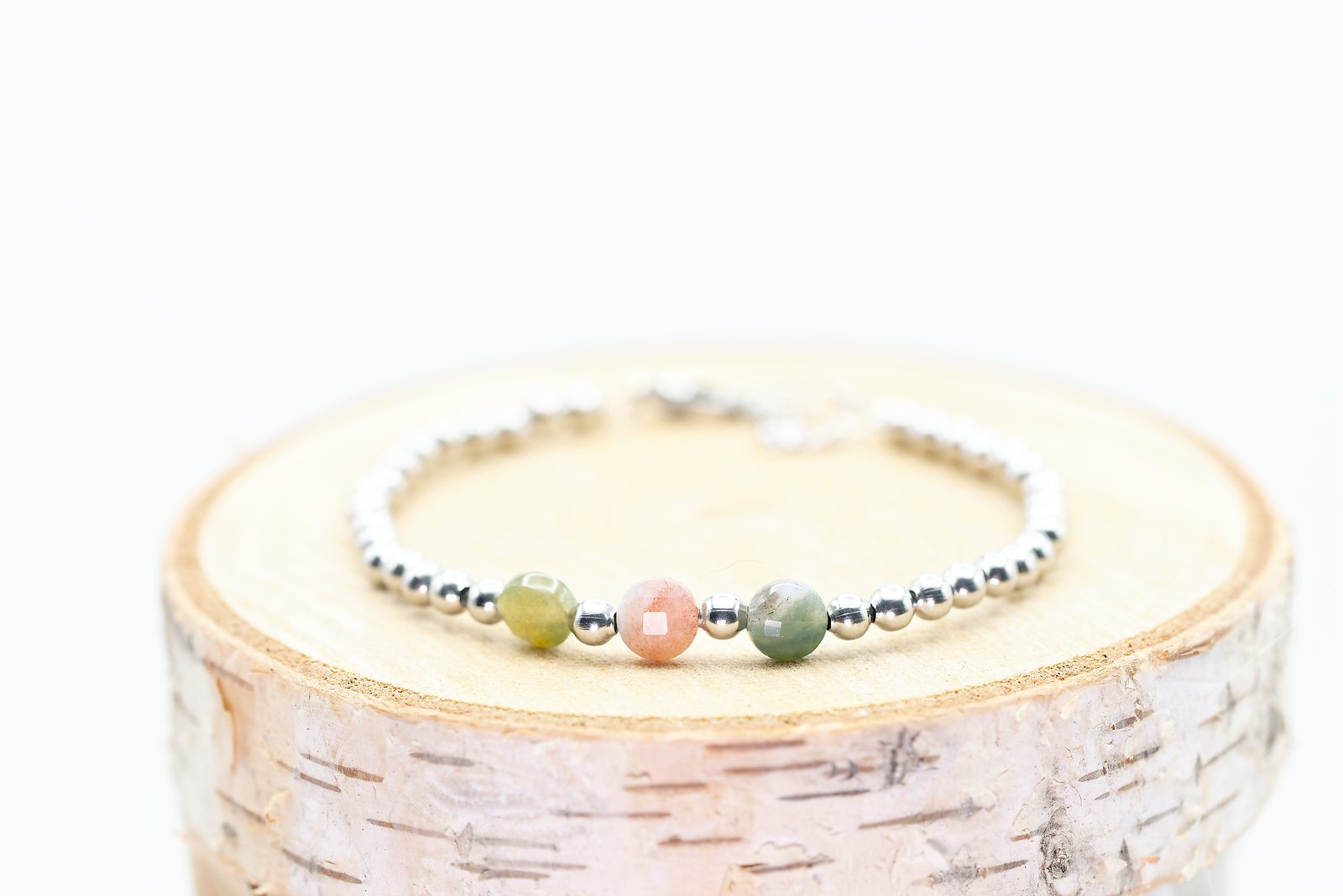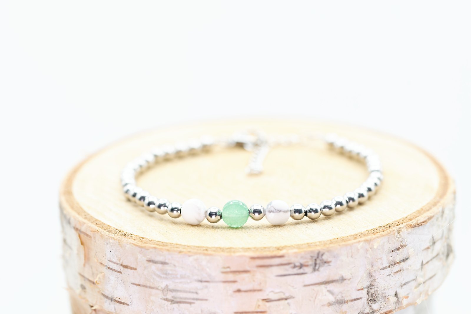 Acier inoxydable, pierres naturelles, diamètre pierres 4 ou 6mm, réglable par chaine 4cm