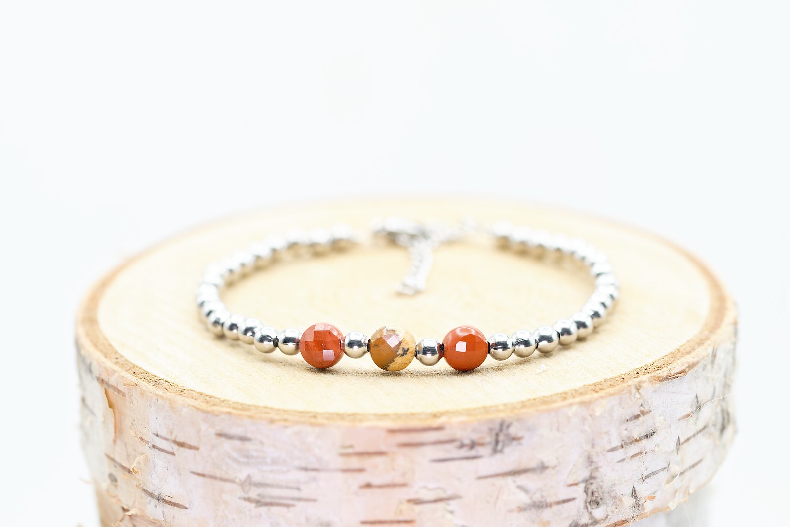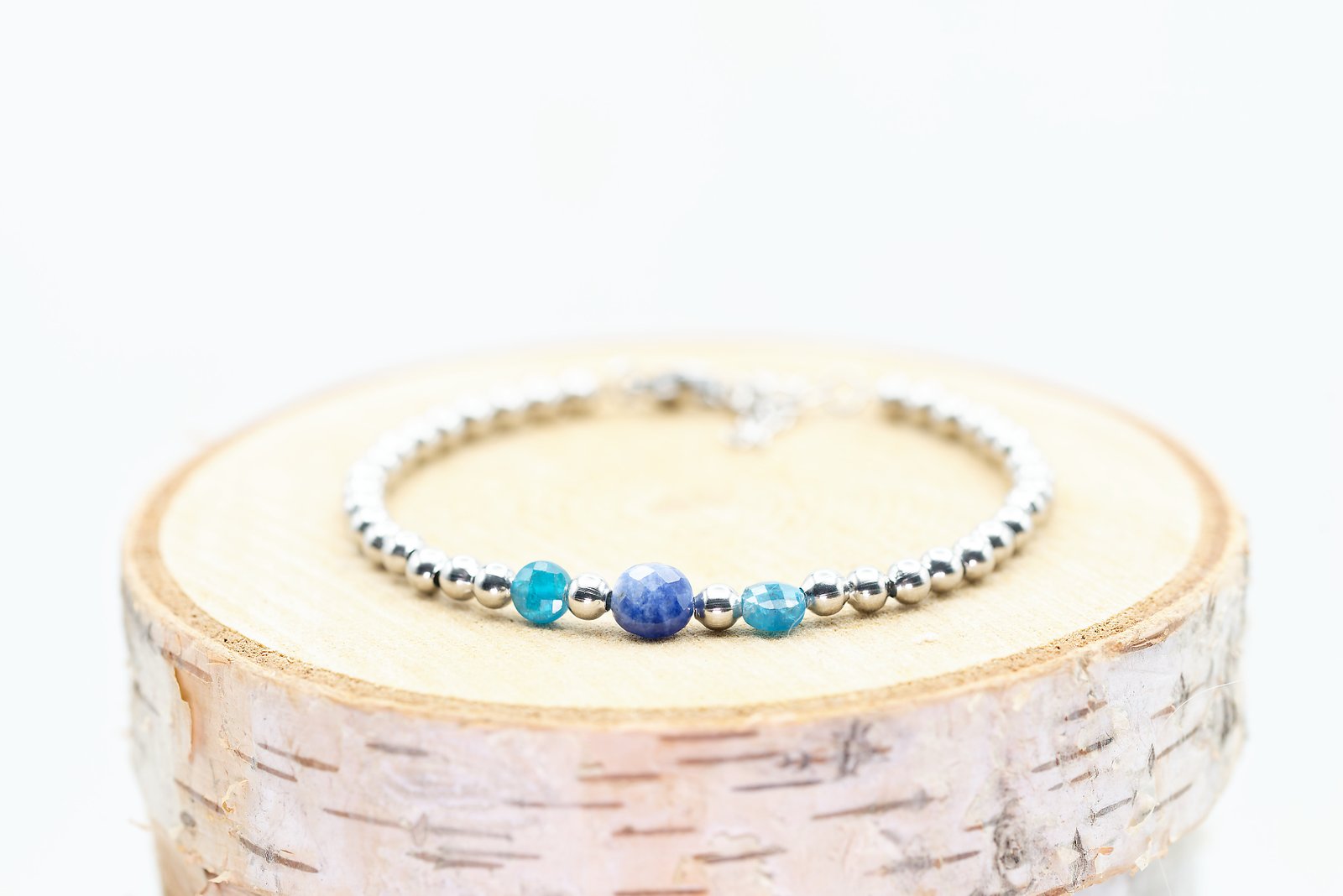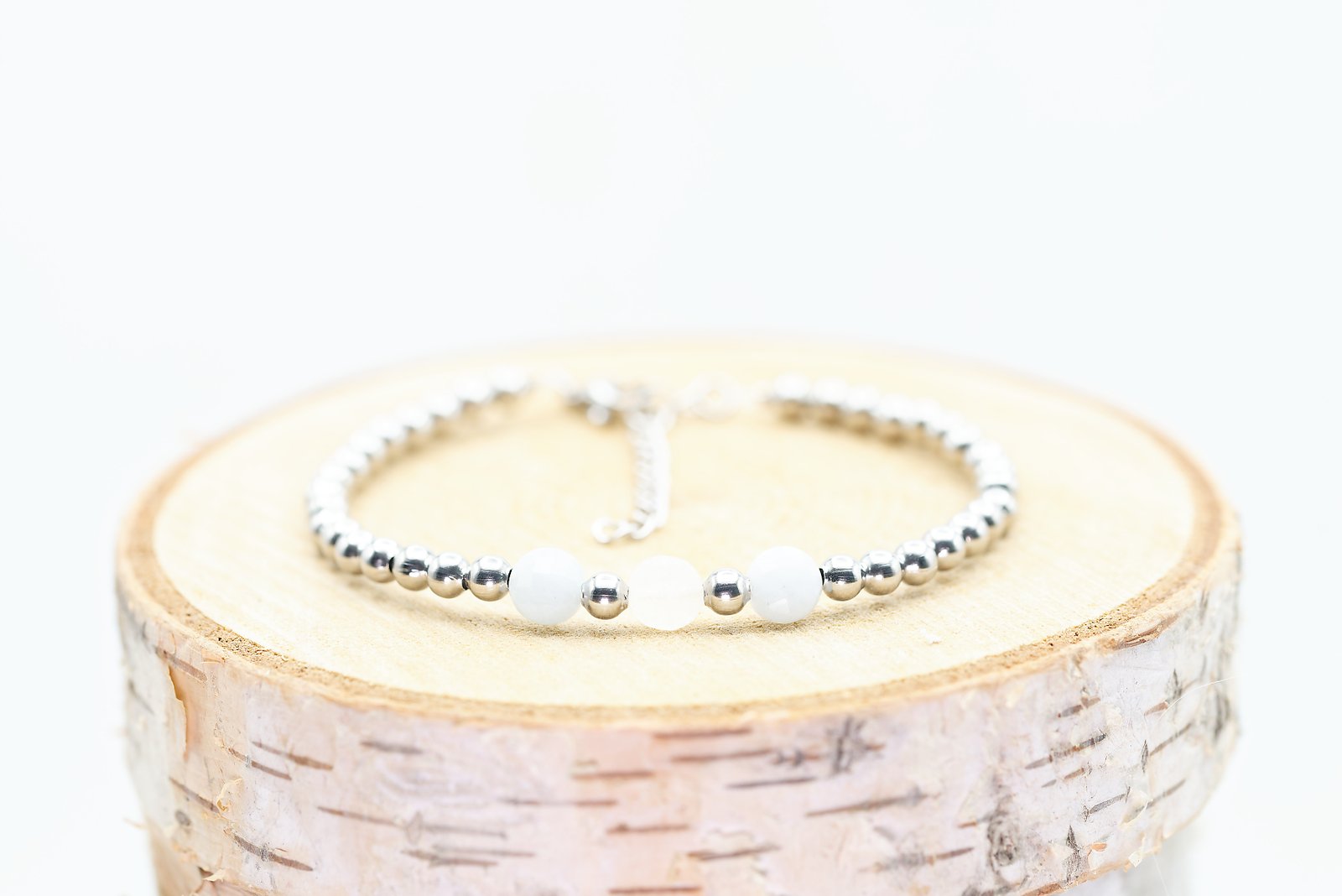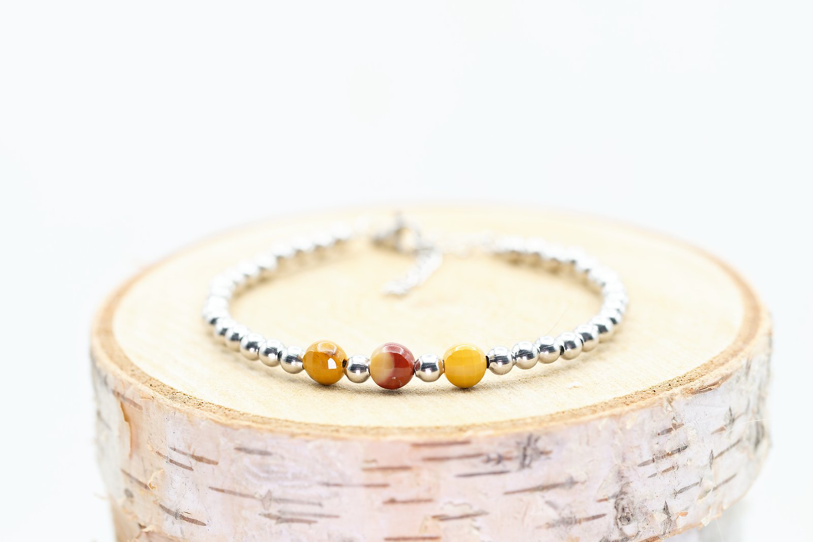Acier inoxydable, pierres naturelles, diamètre pierres 4 ou 6mm, réglable par chaine 4cm