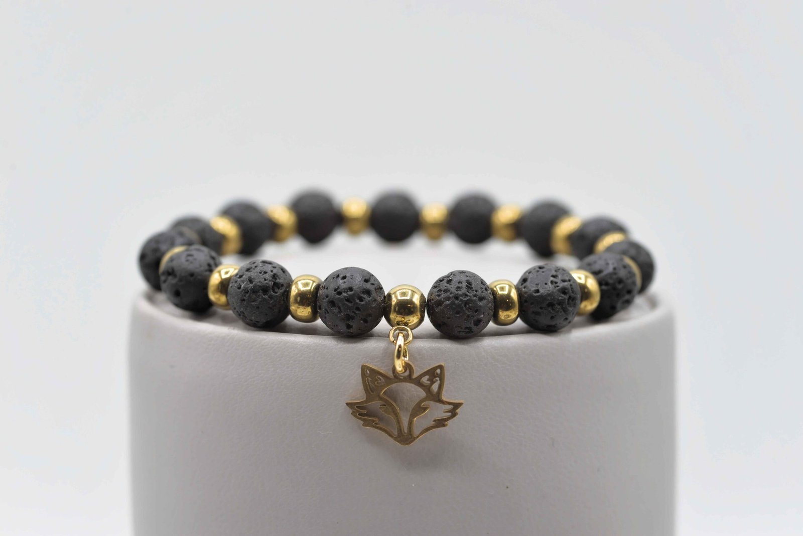 Acier inoxydable, Hématite teintée dorée, pierre 8mm