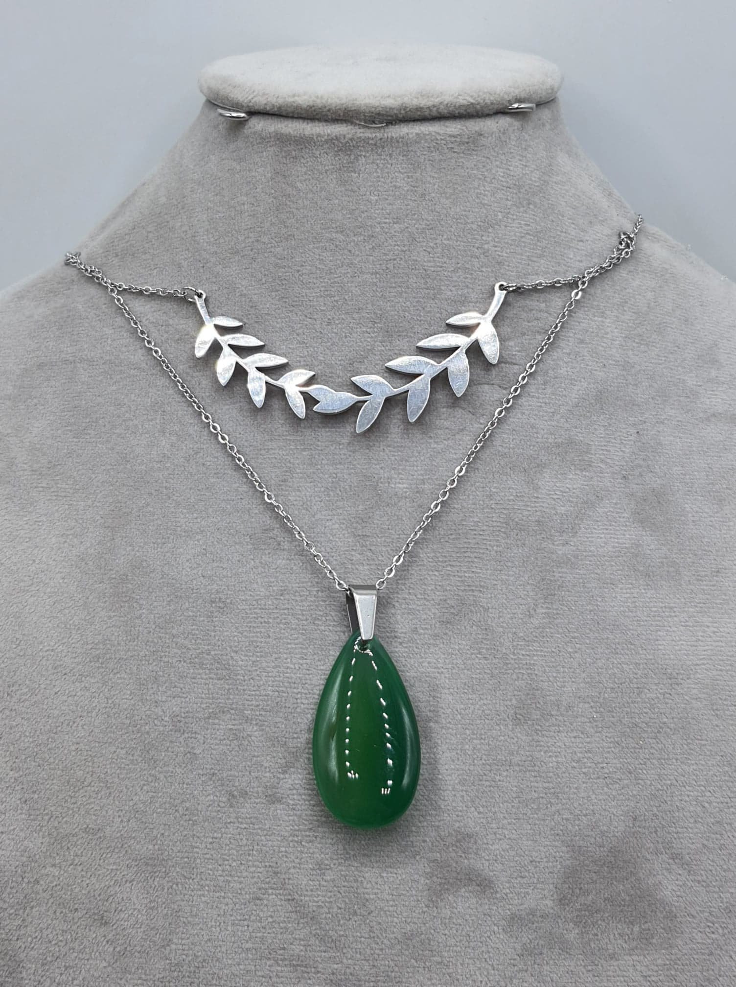 Acier inoxydable, pierre 3.2CM hors bélière, longueur 44cm hors bélière, réglable par chainette