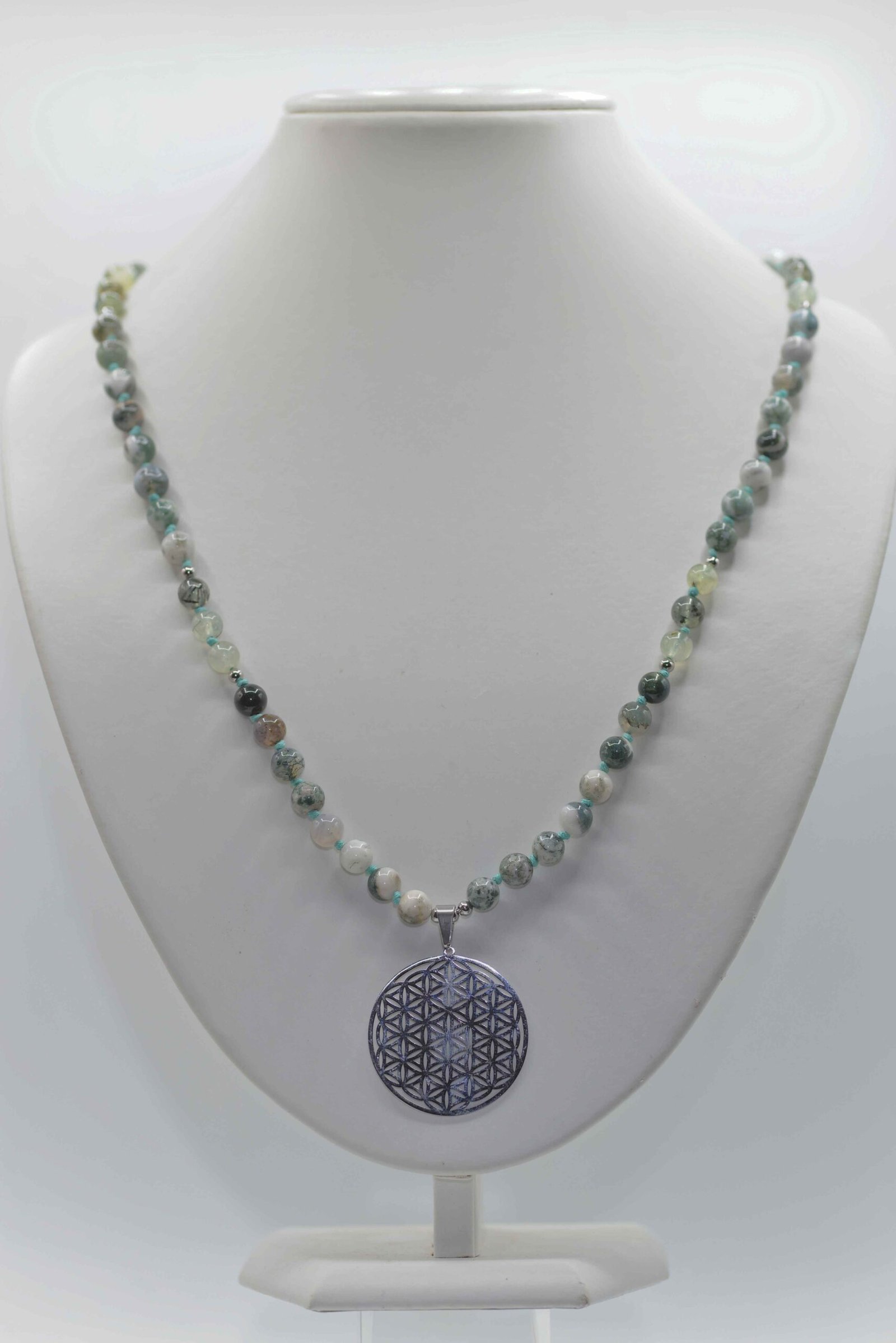 Acier inoxydable, perles 8mm, pendentif 4cm, collier env. 69cm