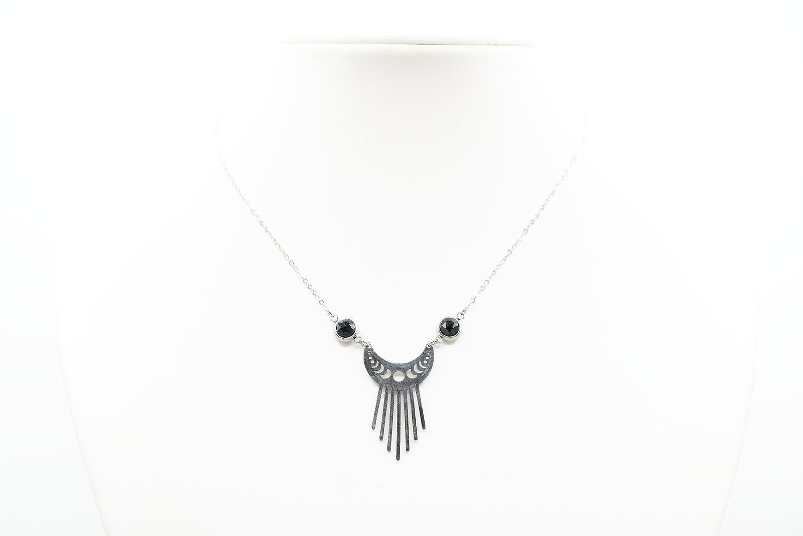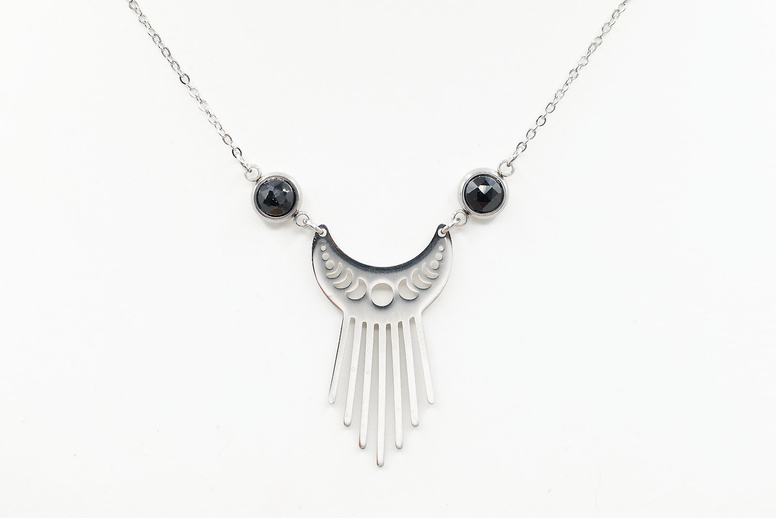 Acier inoxydable, pierres naturelles, pierres 6mm, longueur totale 40cm hors pendentif