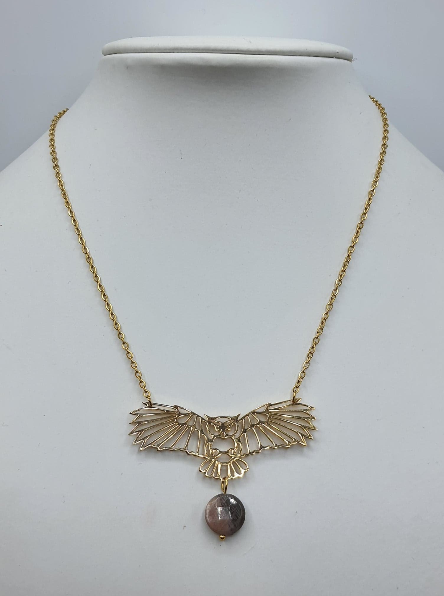 Acier inoxydable, pierre 10mm, chouette 5.5cm de large, longueur chaîne 40cm
