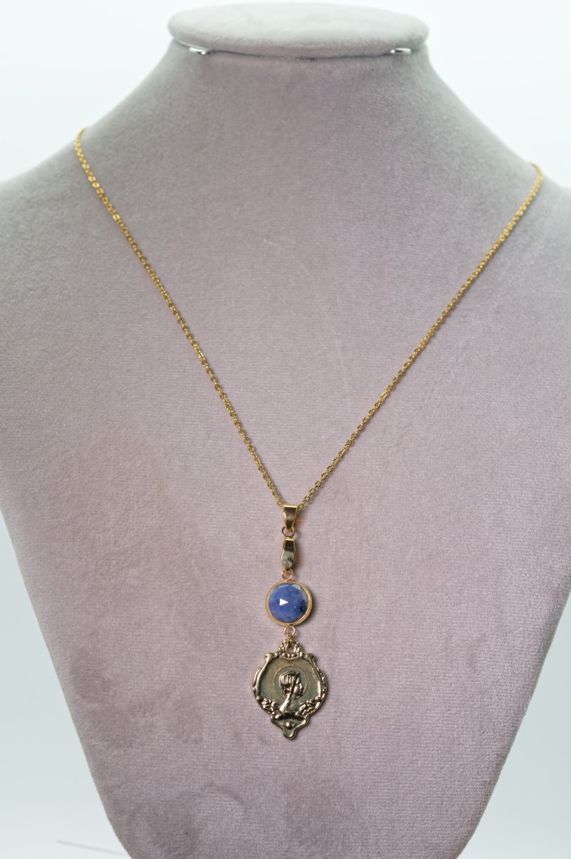 Acier inoxydable, pierre 10mm facettée, longueur totale 45cm hors pendentif