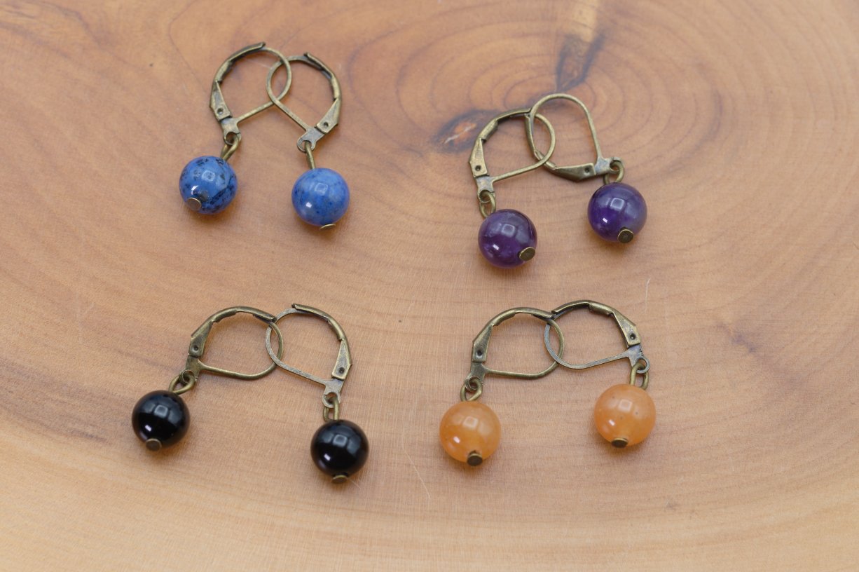 Laiton (sans nickel, plomb, cadmium), pierres 8mm, longueur 1.5cm