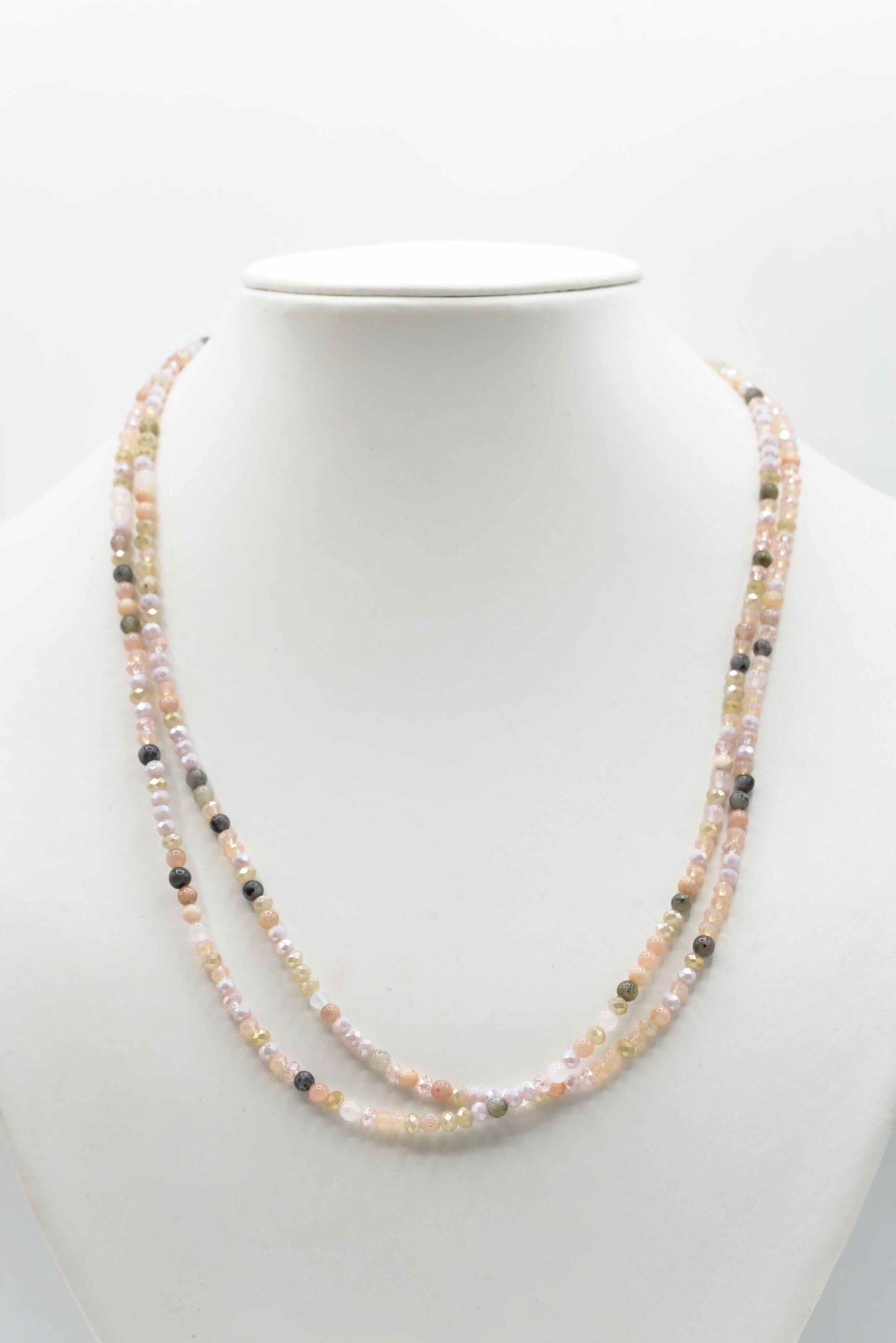 Acier inoxydable, verre, pierre de lune, pierre de soleil, labradorite, quartz rose, environ 104cm réglable
