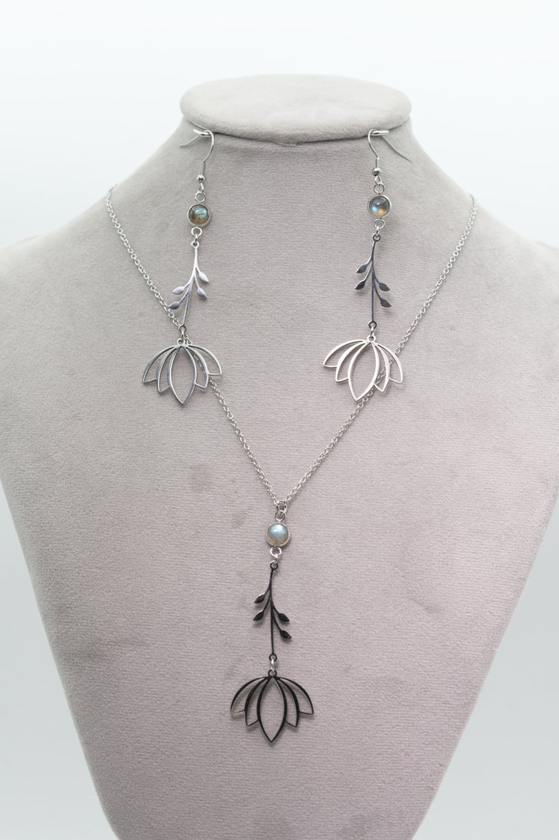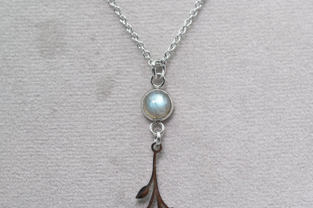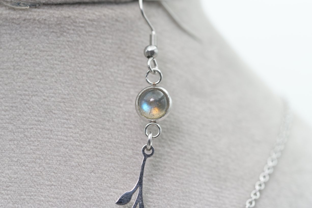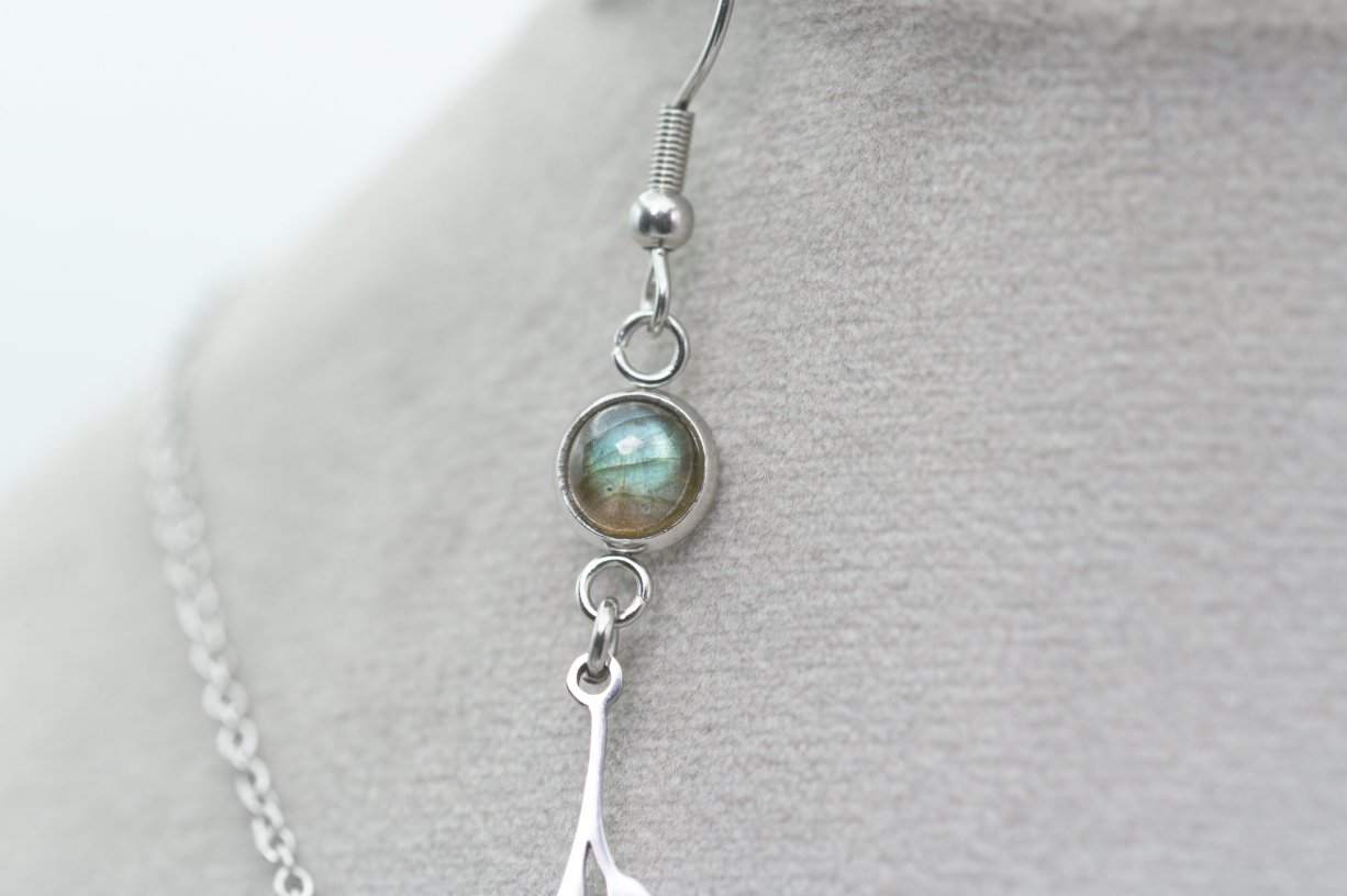 Acier inoxydable, pierre 6mm, longueur chaine 40cm réglable, longueur boucles 4cm