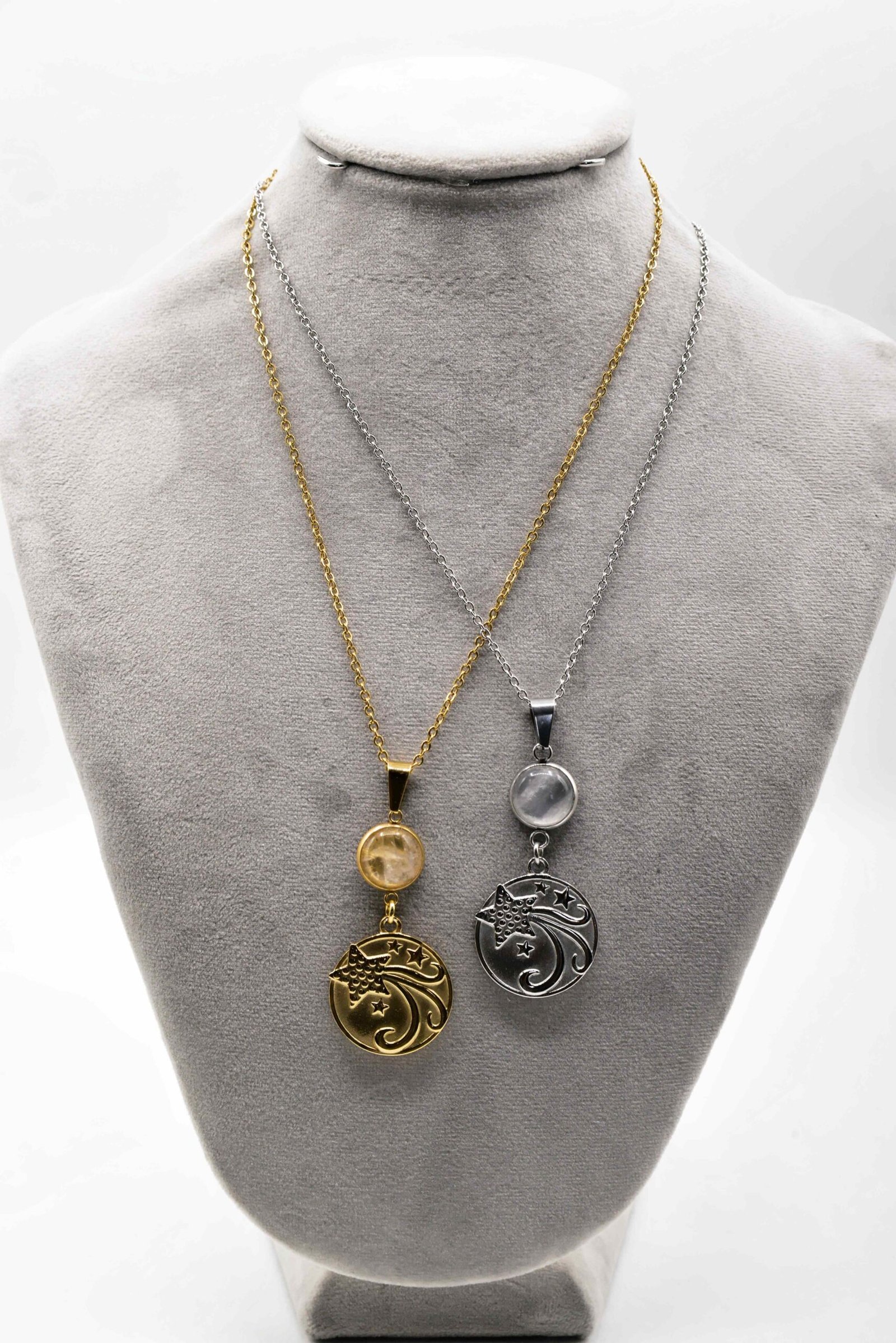 Acier inoxydable, 4.7cm hors bélière, pierre 12mm, chaine vendue séparément