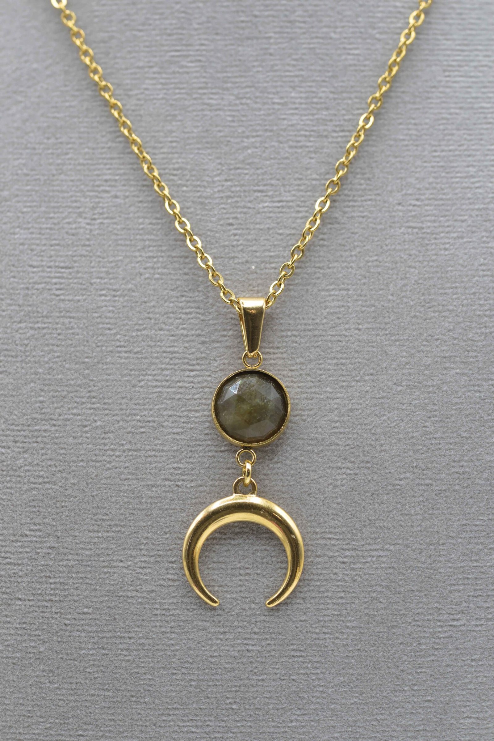 Acier inoxydable, labradorite facettée 10mm, env. 3.5cm hors bélière