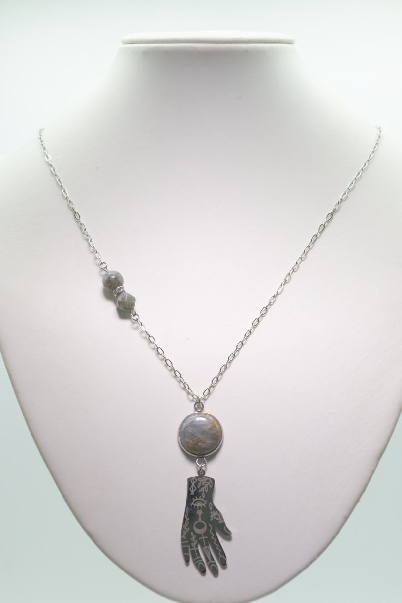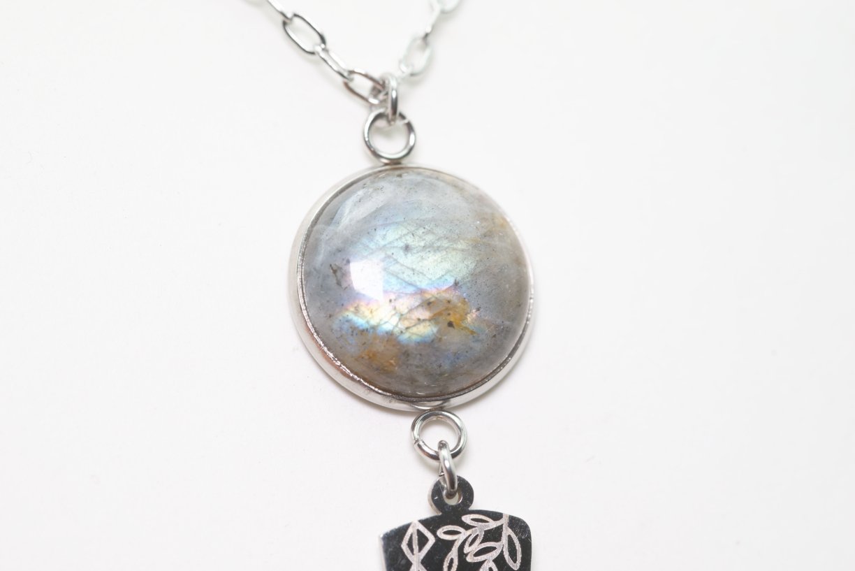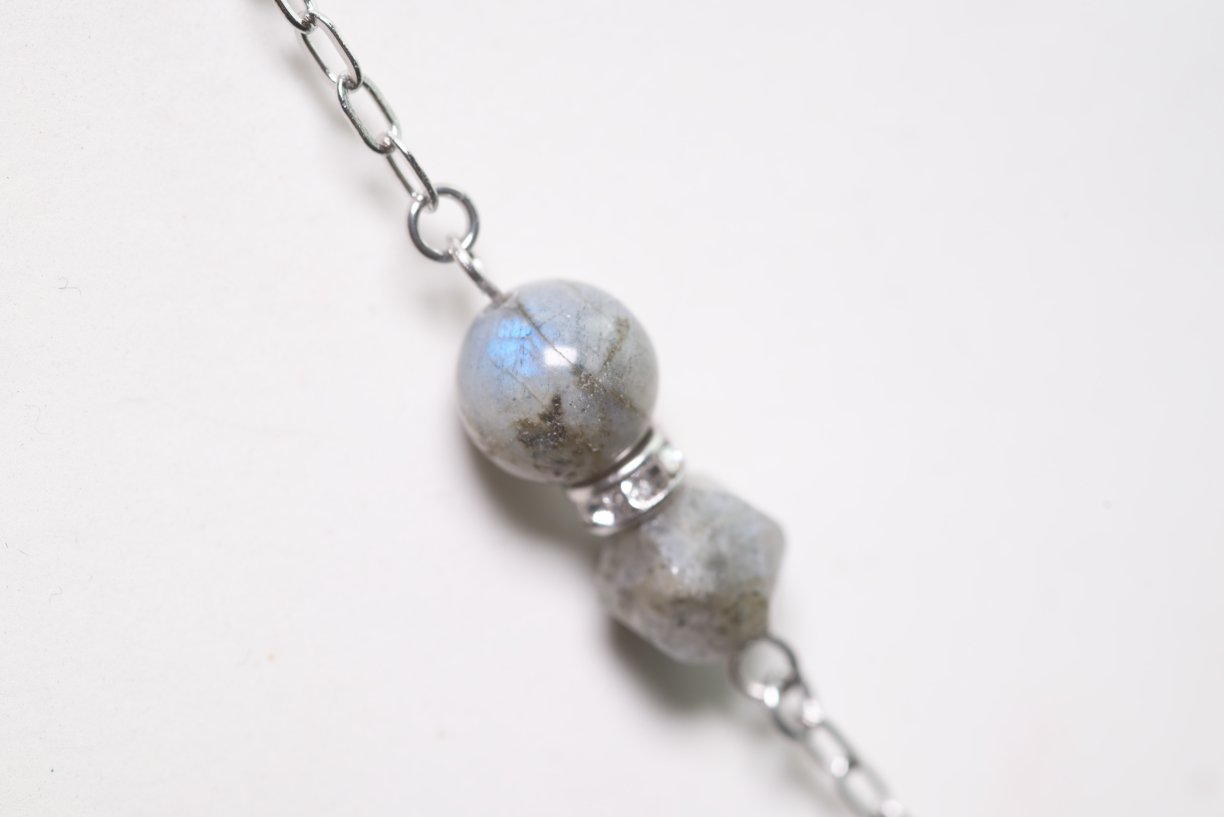Acier inoxydable, pierres naturelles, pierres 10 et 20mm, longueur totale 75cm hors pendentif