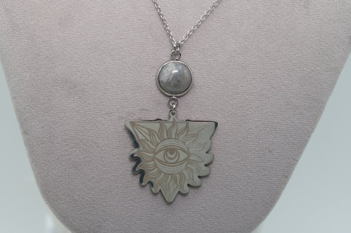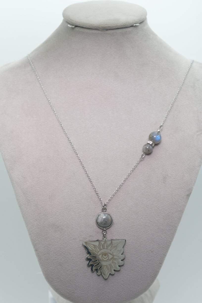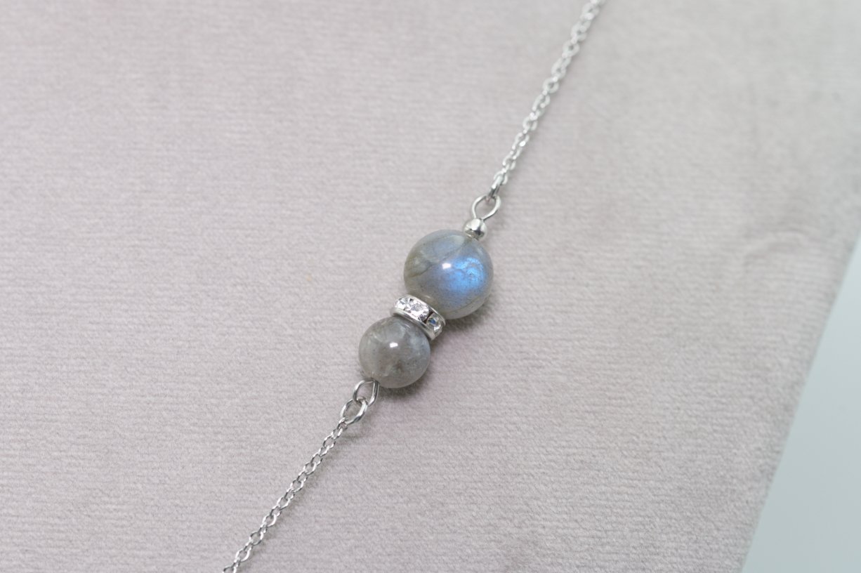 Acier inoxydable, pierres 8mm, 10mm et 12mm, longueur chaine 75cm