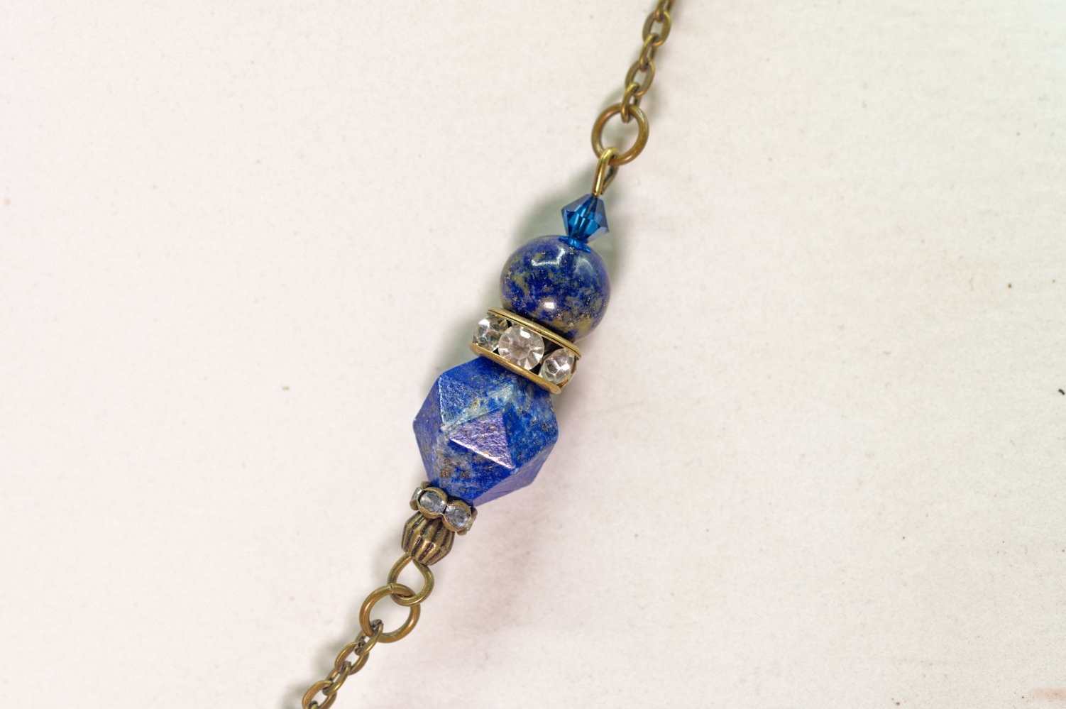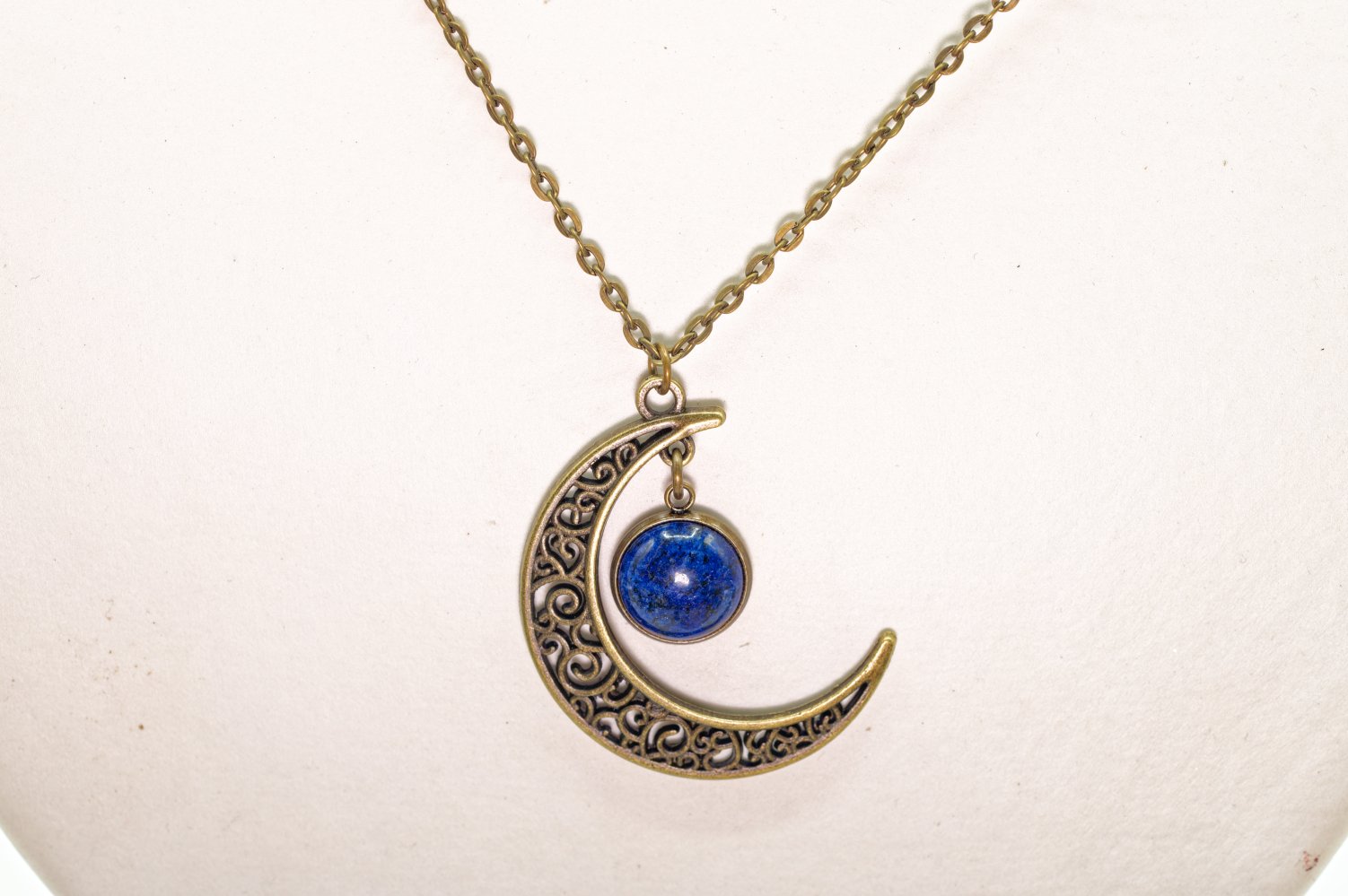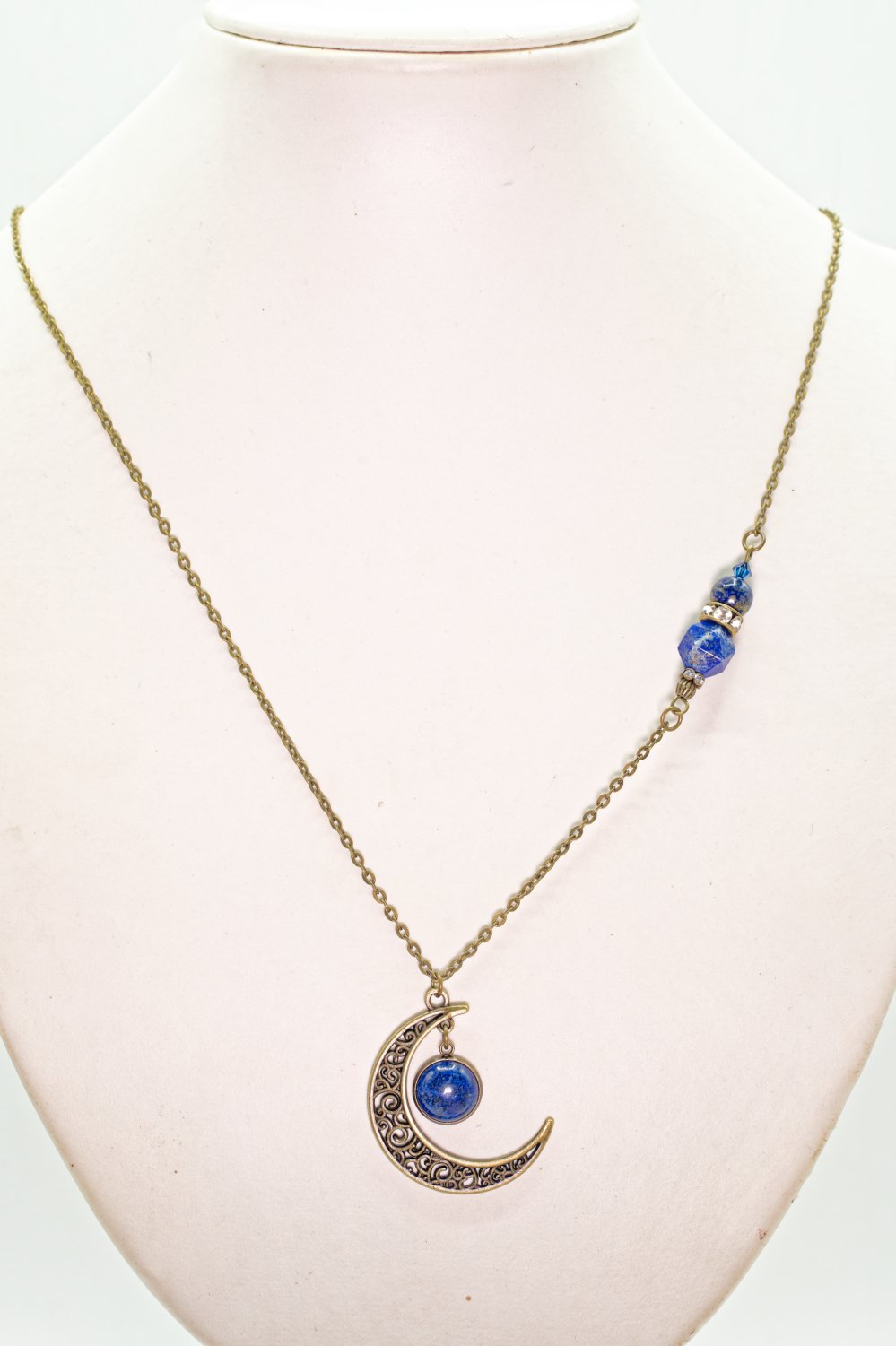 Sautoir lapis-lazuli lune bronze