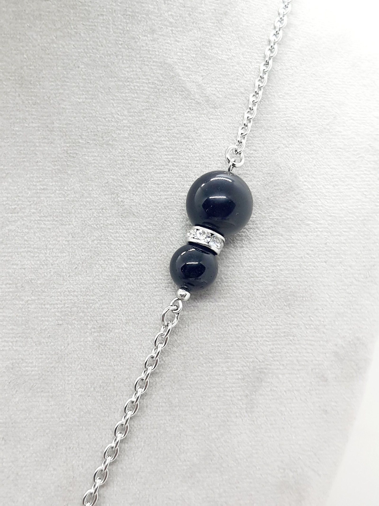 Sautoir obsidienne noire et oeil céleste Bouddha