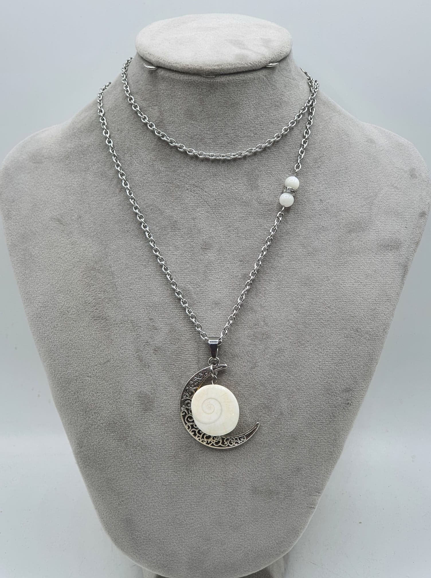 Acier inoxydable, lune 3.5cm, longueur chaine env 67cm