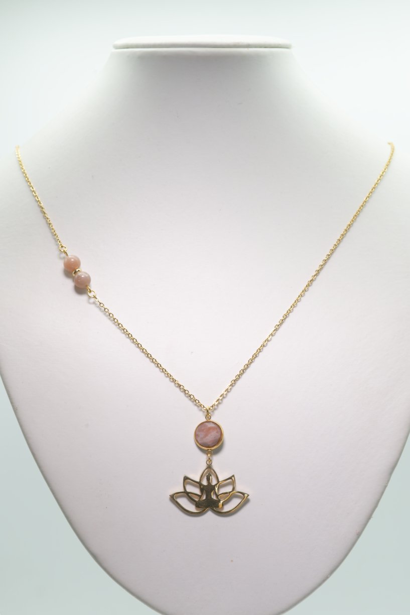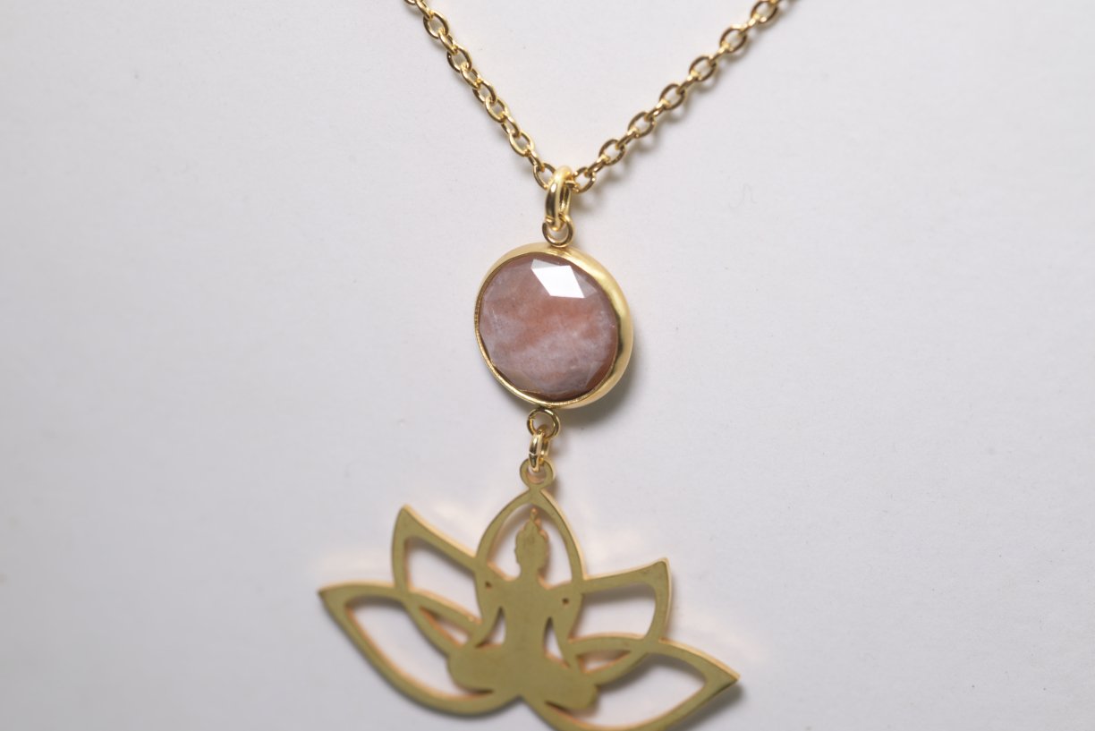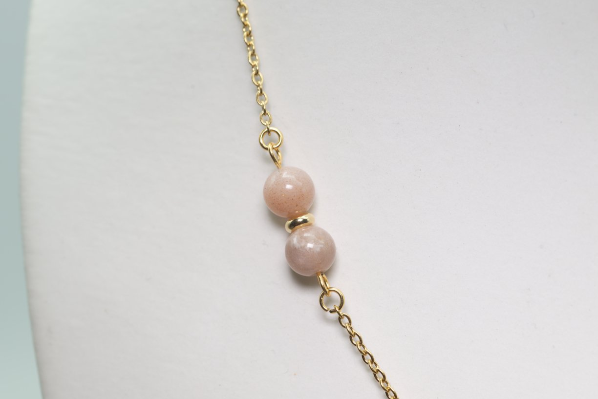 Acier inoxydable, pierres naturelles, pierres 8 et 10mm, longueur totale 74cm hors pendentif