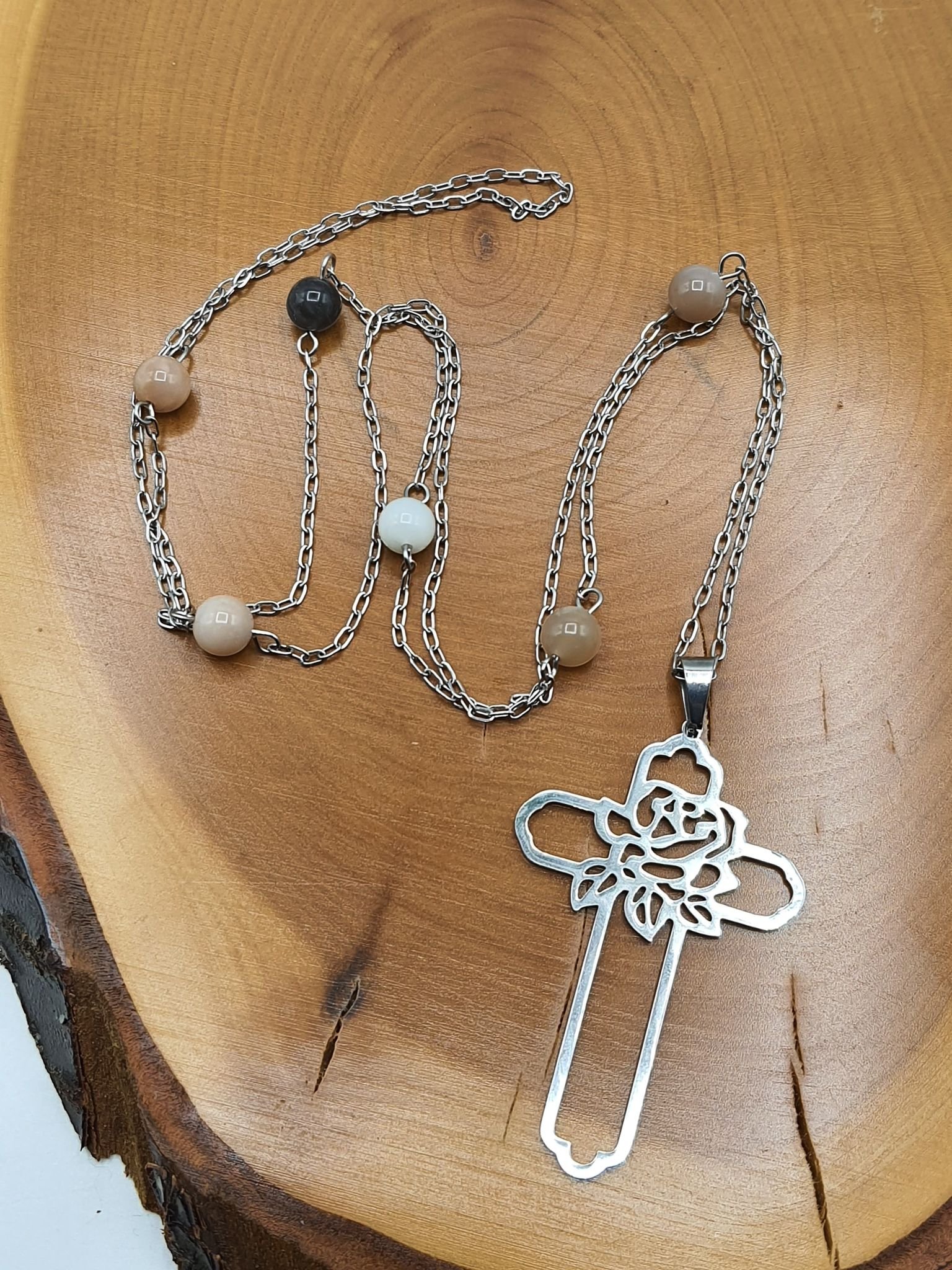 Acier inoxydable, pierre 8mm, longueur 90cm