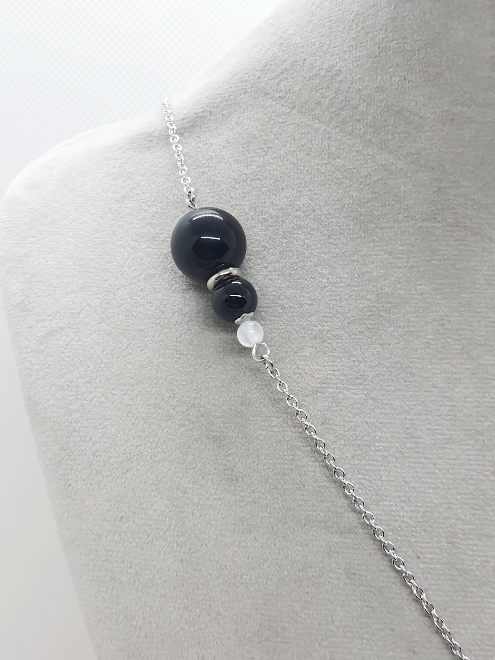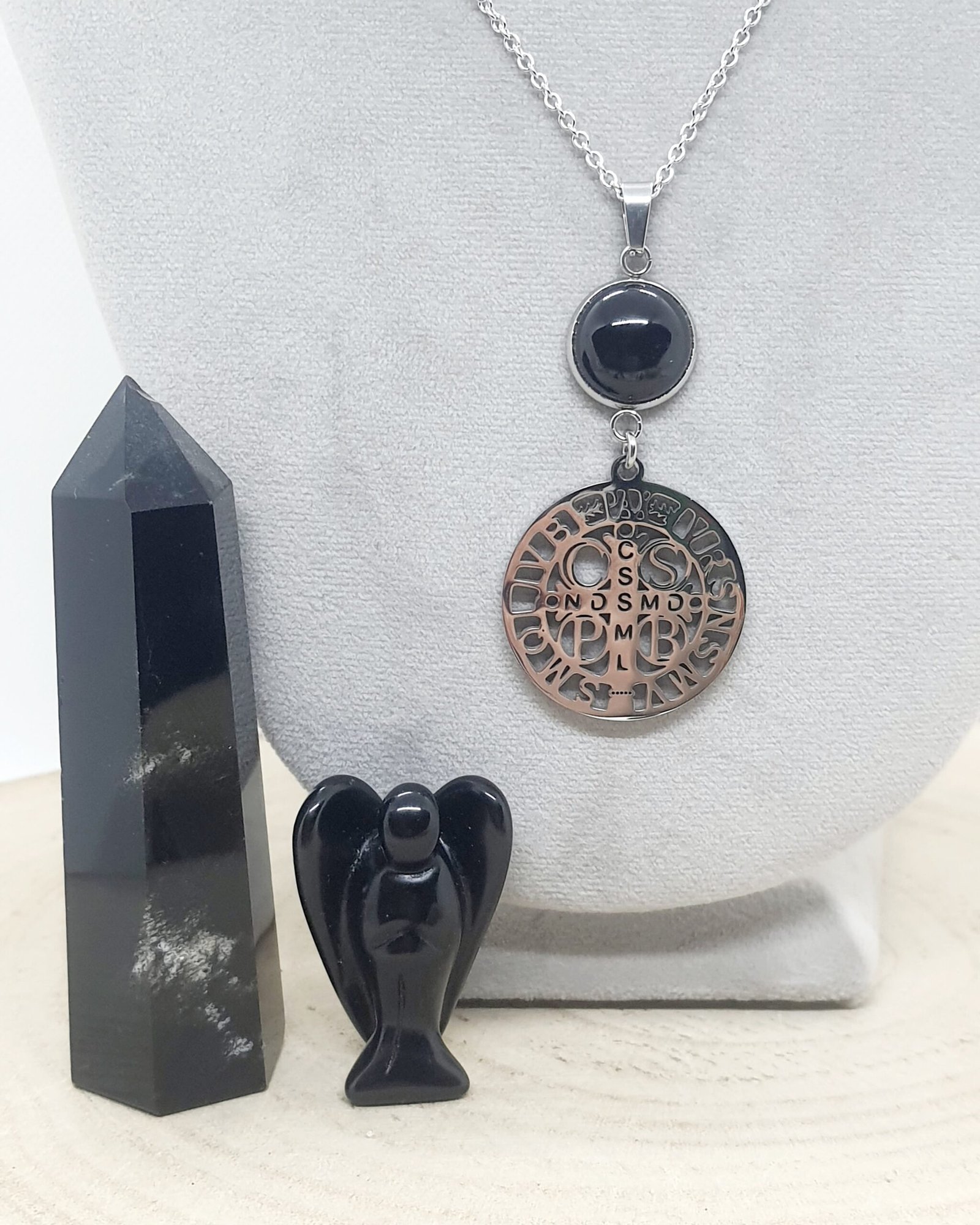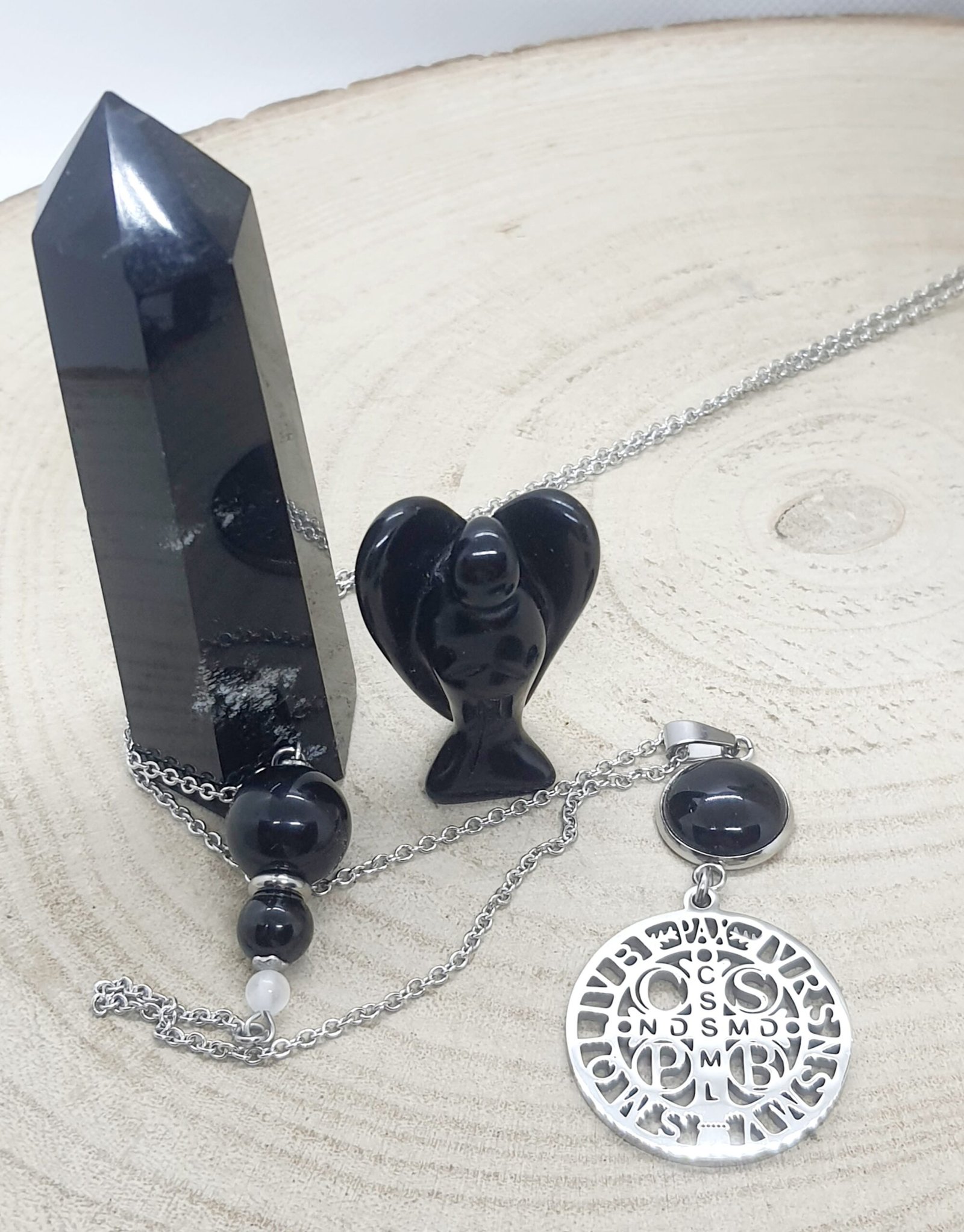 Obsidienne oeil celeste, spinelle noir, sélénite